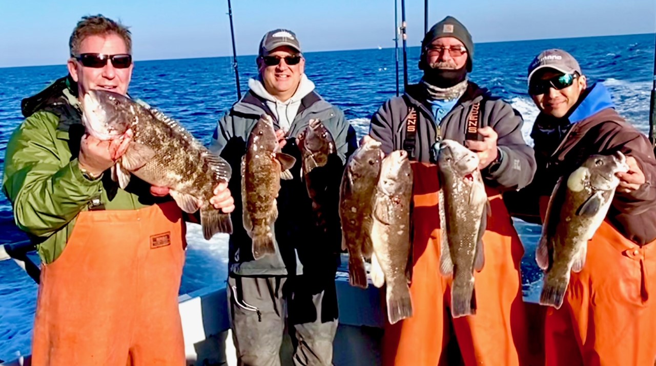 First hook-up is a spiny dogfish. Whaaaattt.. Nasty green eyes has no business eating a tog bait. Then James Lee boats a 17incher. Oyyyy… We were not off to a rocket start despite a great wealth of toggin experience aboard.