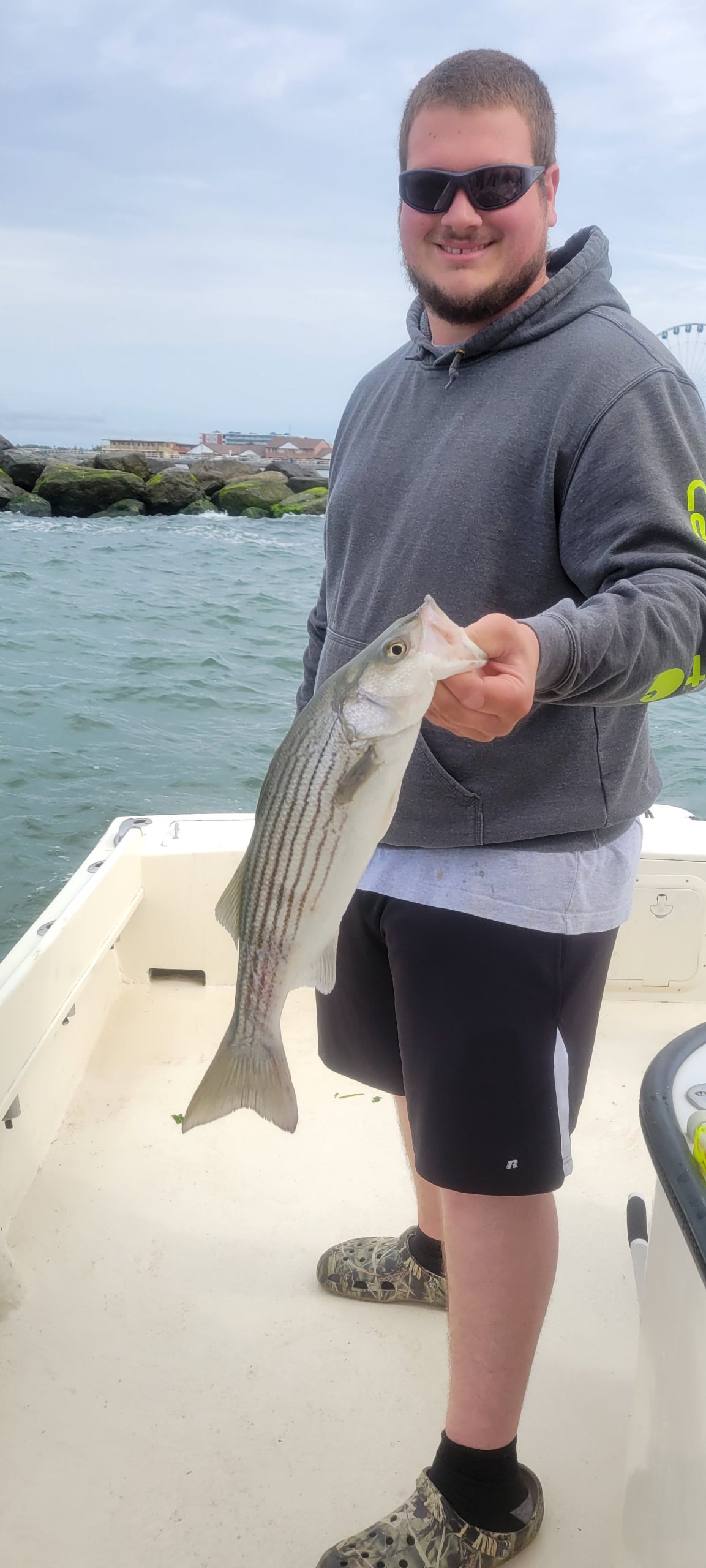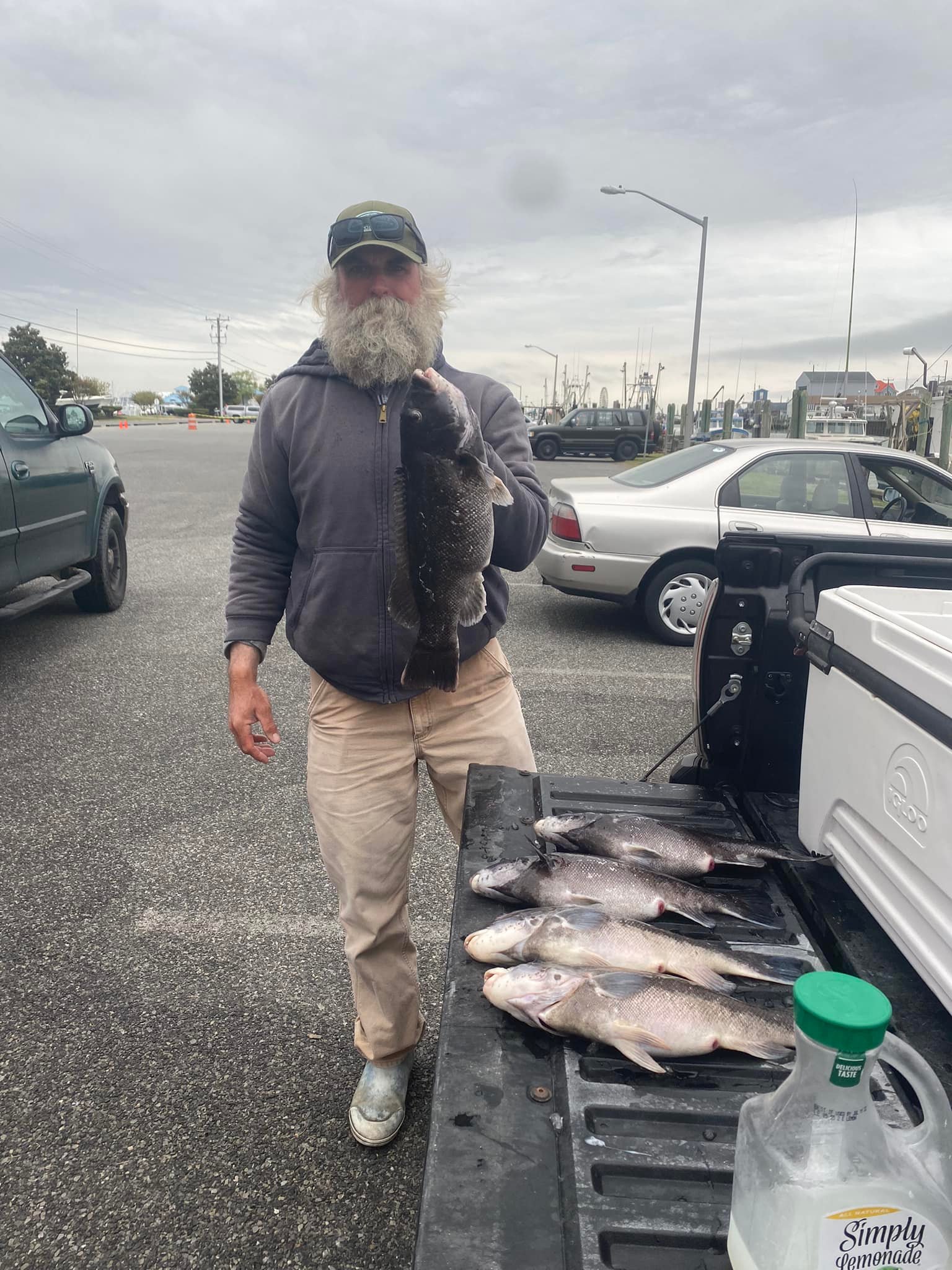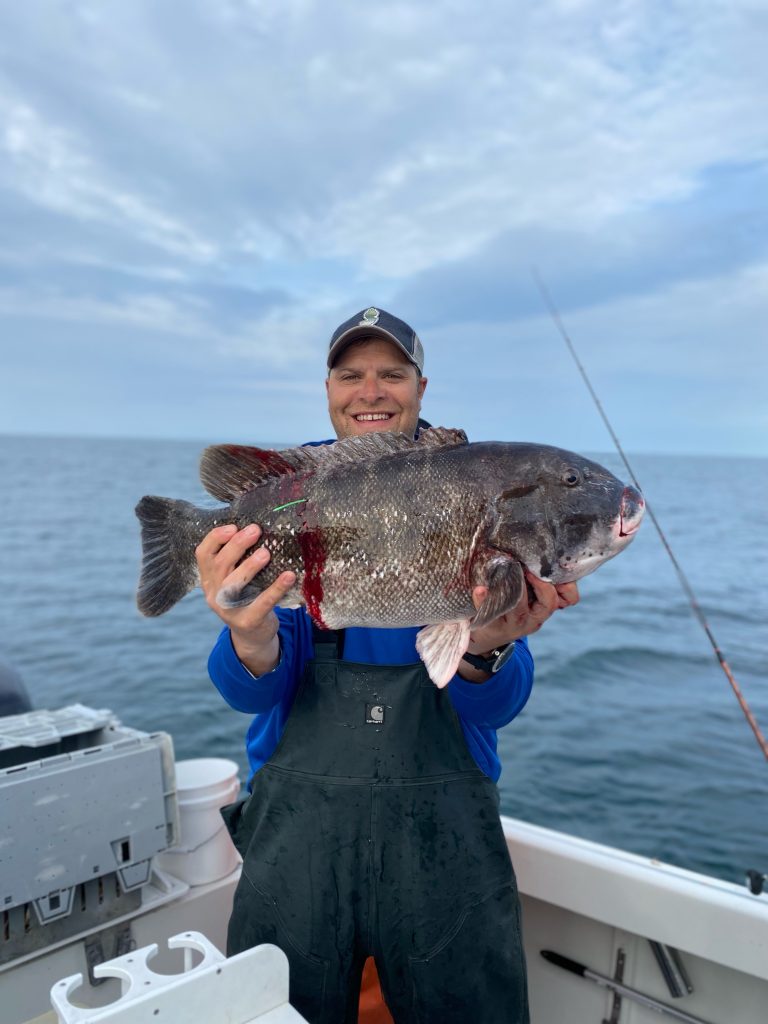 Captain Chase Eberle of Chasin’ Tides Charters was able to get out on the ocean today for some final drops before the storm and he found some good tautog fishing. This 15 pound fish was caught and then safely released.