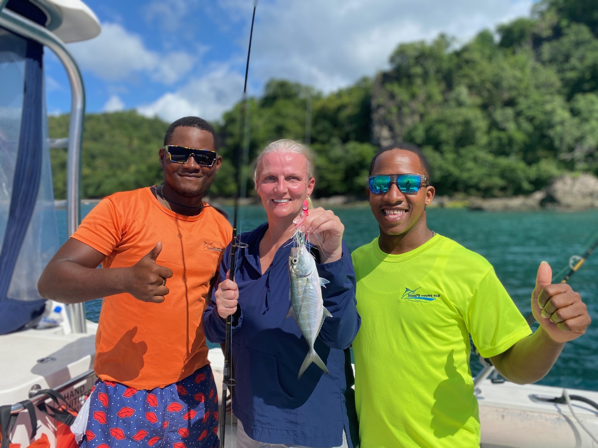 Kristen and I are still enjoying our vacation down in St. Lucia and today we actually got to do a little fishing on a tour to Soufriere where we had a great time. It wasn’t much, but Kristen got the skunk off the boat with a small (very) jack.