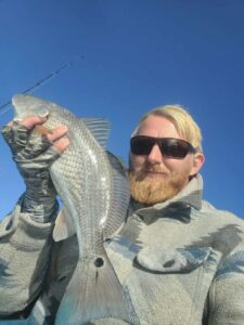 Brian Reynolds had a chilly day on the water today, but it was worth it as he caught a limit of tautog, a slot red drum and some throwback rockfish.