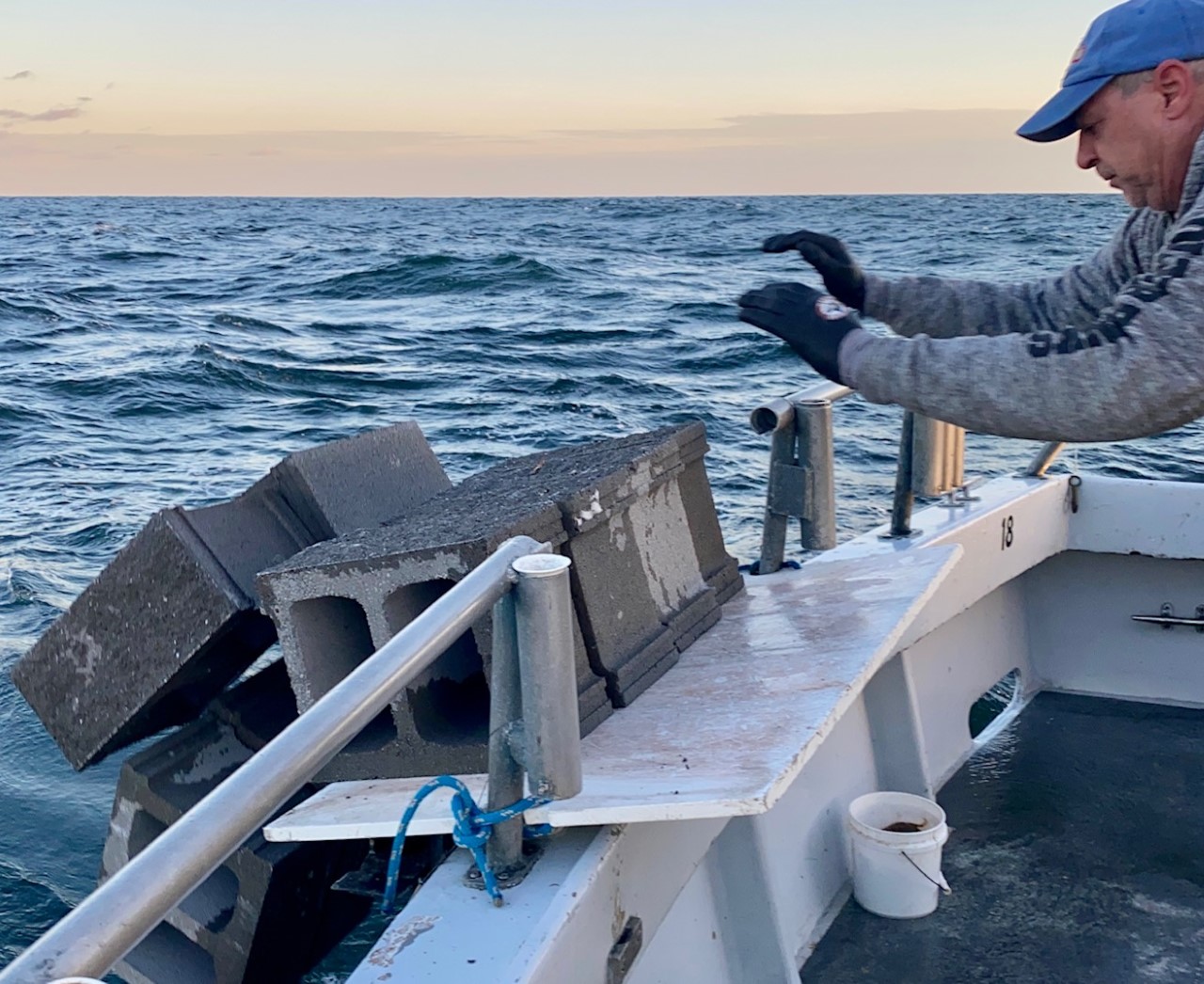 Tim dropped today’s reef blocks at Tyler Long’s Reef then we anchored on a few pieces nearby while waiting like Linus in the pumpkin patch for the forecast to come true.