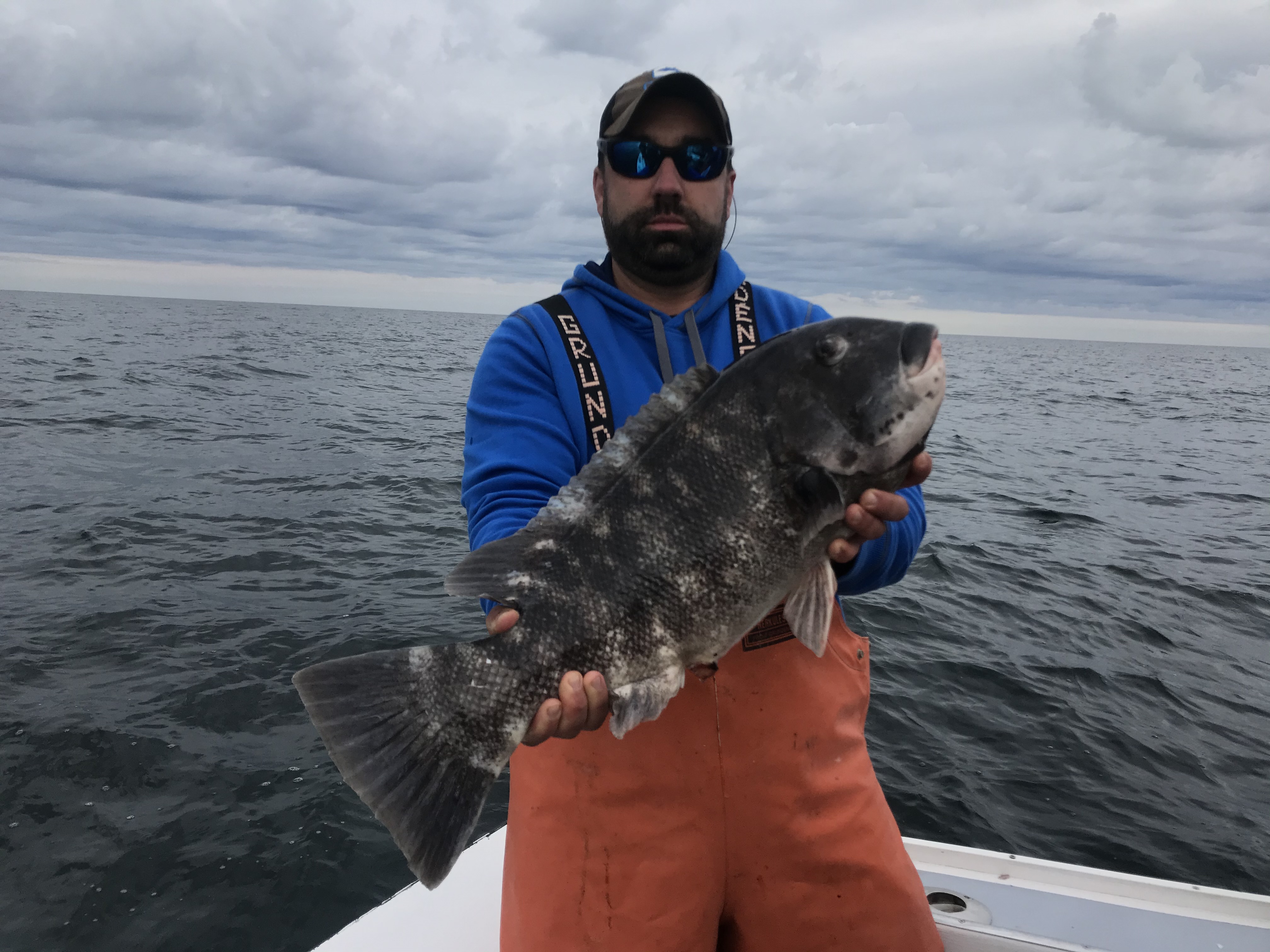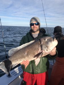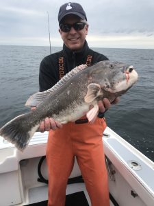 Today started off absolutely beautiful on the water. There was definitely a nip in the air, but the ocean was flat calm and we were greeted by a gorgeous sunrise. The weather has turned to crap now with a cold rain and a gusty wind and tomorrow looks to blow a gale. It was a great day to get out on the ocean to make a new episode of Hooked on OC and do some tog taggin’!