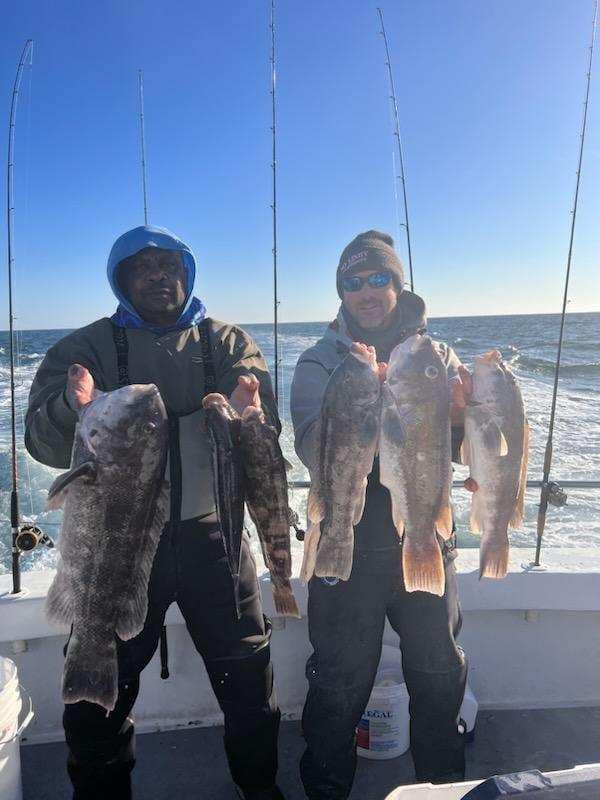 Captain Kane Bounds of the Fish Bound holds the current world record for tautog, or “blackfish”, at 28.8 pounds so I’m pretty certain he and his crew know what they are doing. Captain Kane has had a couple of trips during the open weather windows and his anglers have not been disappointed with some good catches and fish up to 15 pounds.
