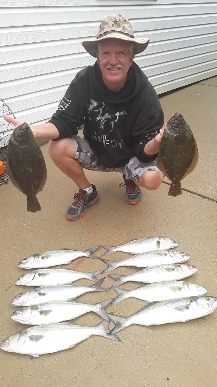 Tom “ Bluefish “ Berry has a good day on the route 50 bridge putting two keeper Flounder and his limit of bluefish in the cooler.