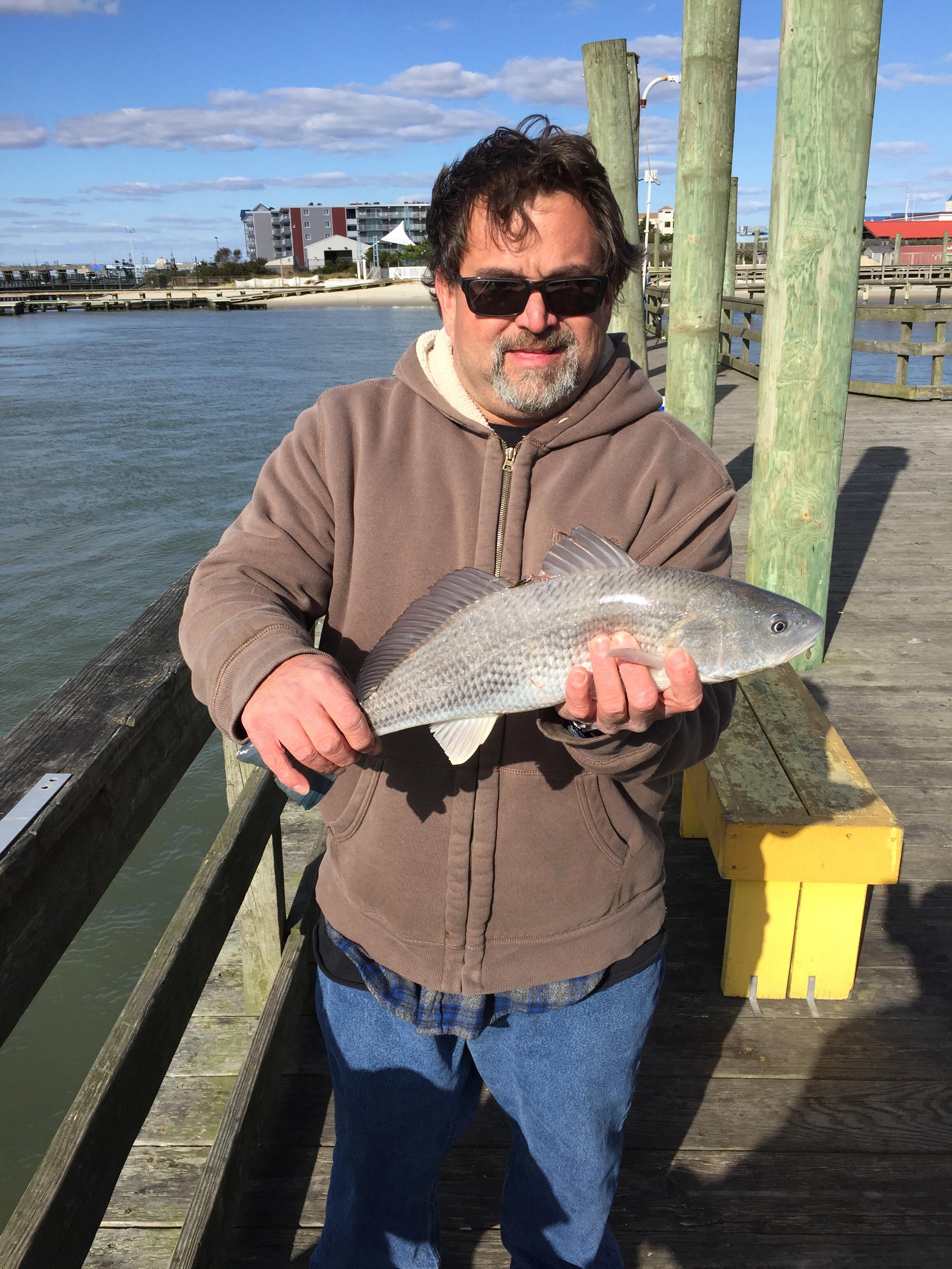 Ed Kuhns fished our Fish in OC Deadly Doubles for the first time today at the Oceanic Pier and had a great day. Ed caught a sea robin, two throwback Flounder and this 19” red drum on Deadly Doubles with shiners.