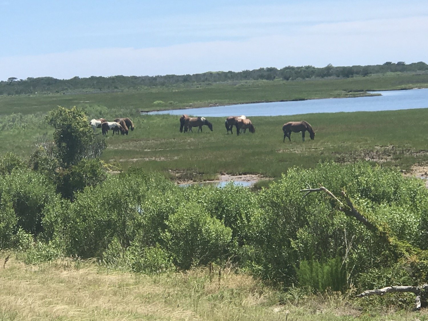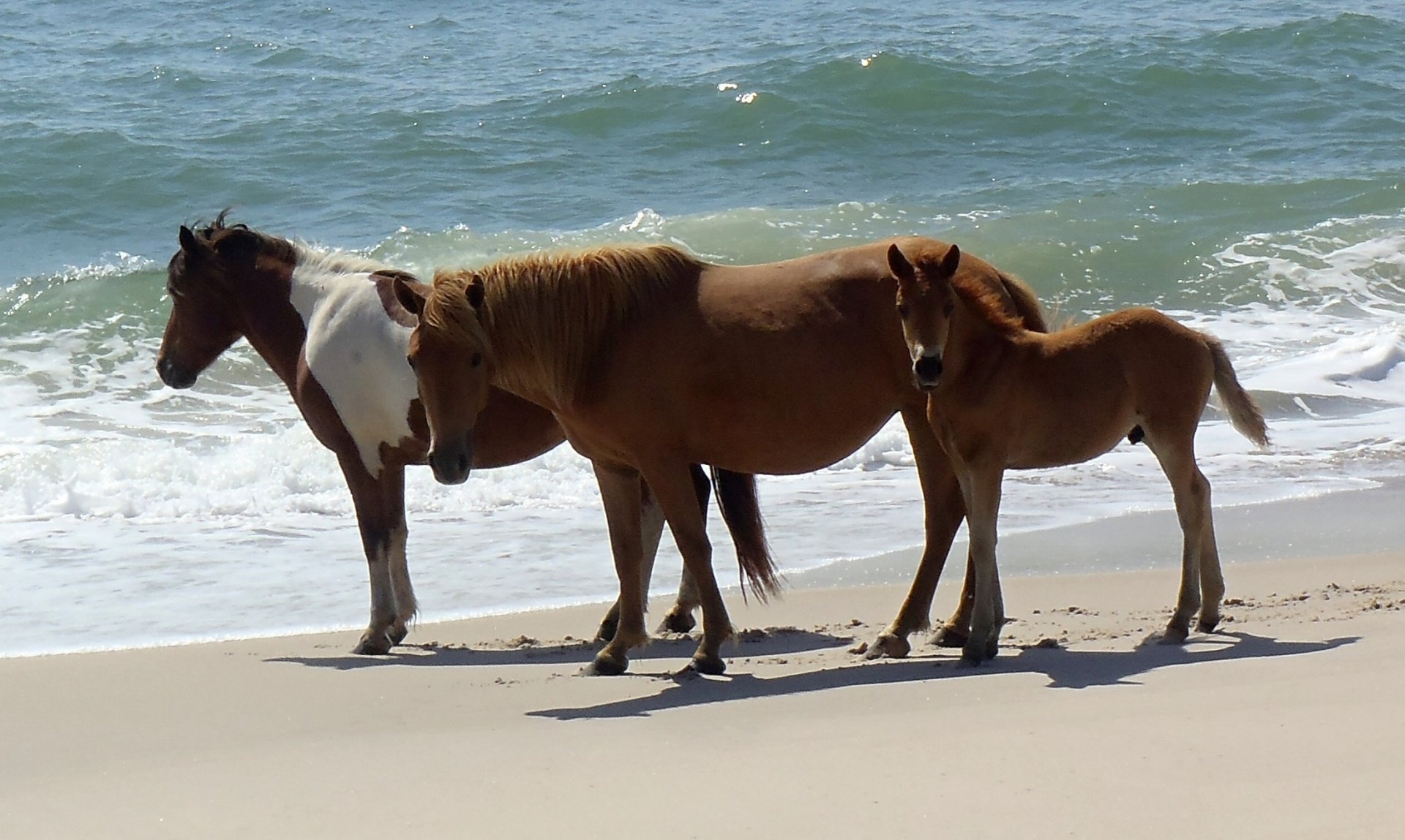 The drive to Assateague is beautiful going over the Verrazano Bridge & into Assateague State Park. Ponies are normally all around as you drive through the park. Many times they are in the parking lots & will come up to you at the beach checking for food. Please do not feed the ponies. Assateague State Park advises everyone to stay 40 feet or a “bus length” away from the horses. Remember they are wild ponies & can kick & bite. Also, please drive slowly into and around the park as sometimes they will come into the road. Sadly, there have been a few ponies run over & killed in recent years.