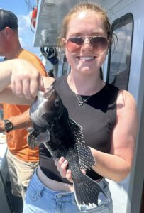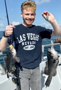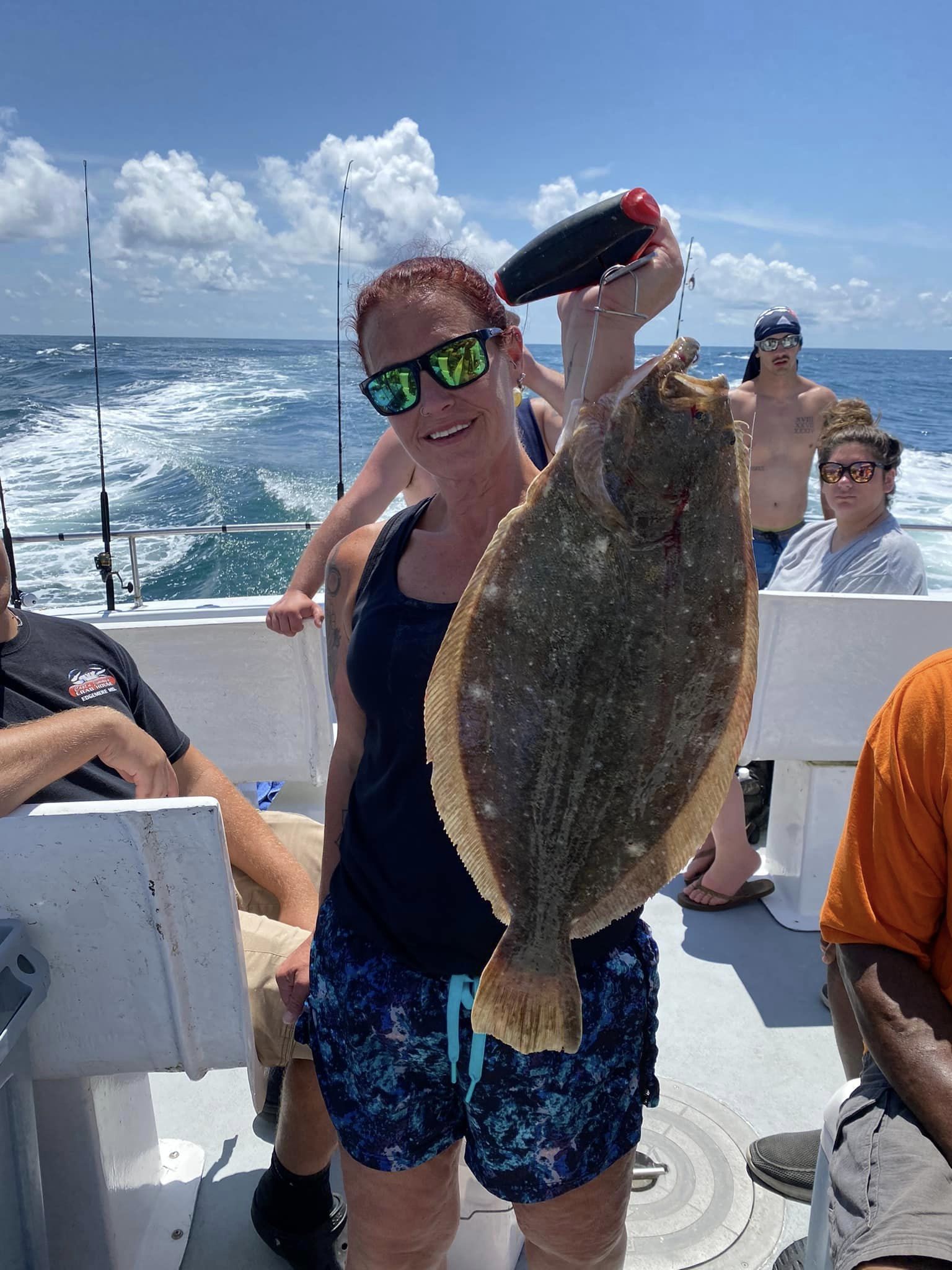 In his classic Charlie Brown “I got a rock” strategy, Hurricanne fished flounder most of the day. When he switched to sea bass the pool winning fluke – our only legal flounder today – was caught.