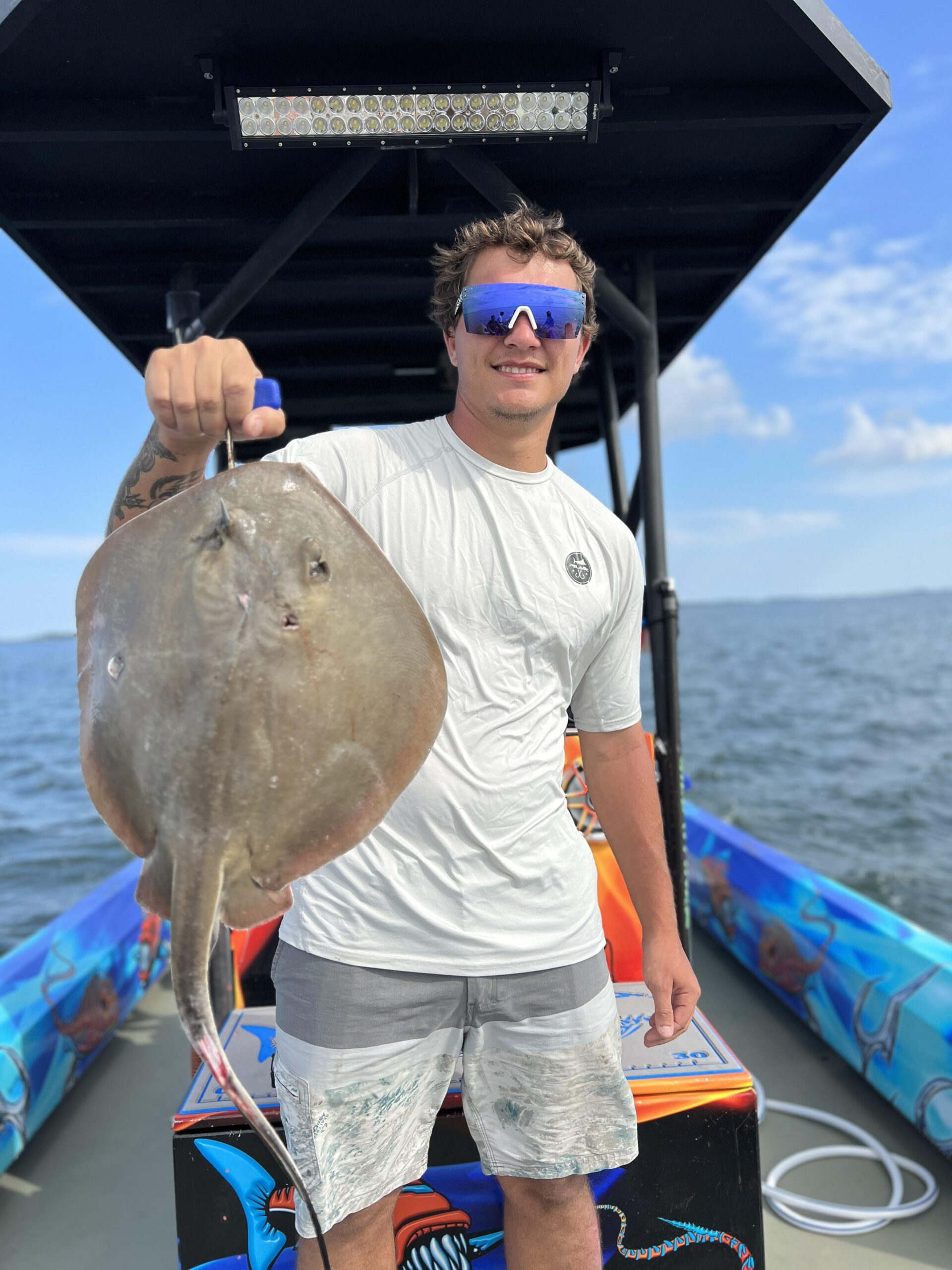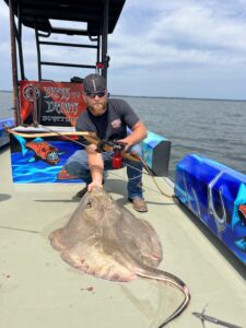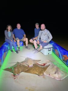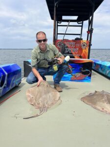 Captain Marc Spagnola of Dusk to Dawn Bowfishing is burning the candle at both ends again and working day and night to put his shooters on some awesome action. They’ve taken advantage of his efforts and put the arrows in some big cow nosed and southern rays.