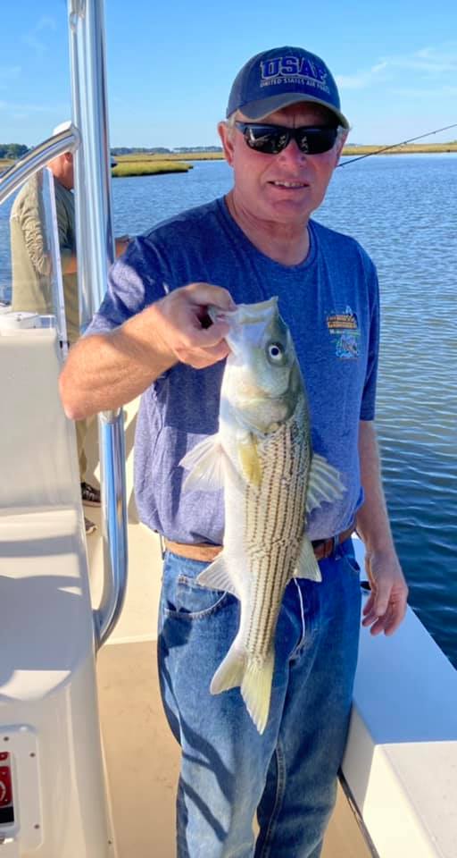 Big Bird Cropper and Shawn Flaherty fished the route 50 bridge today and had two keeper rockfish on the “dredge.”