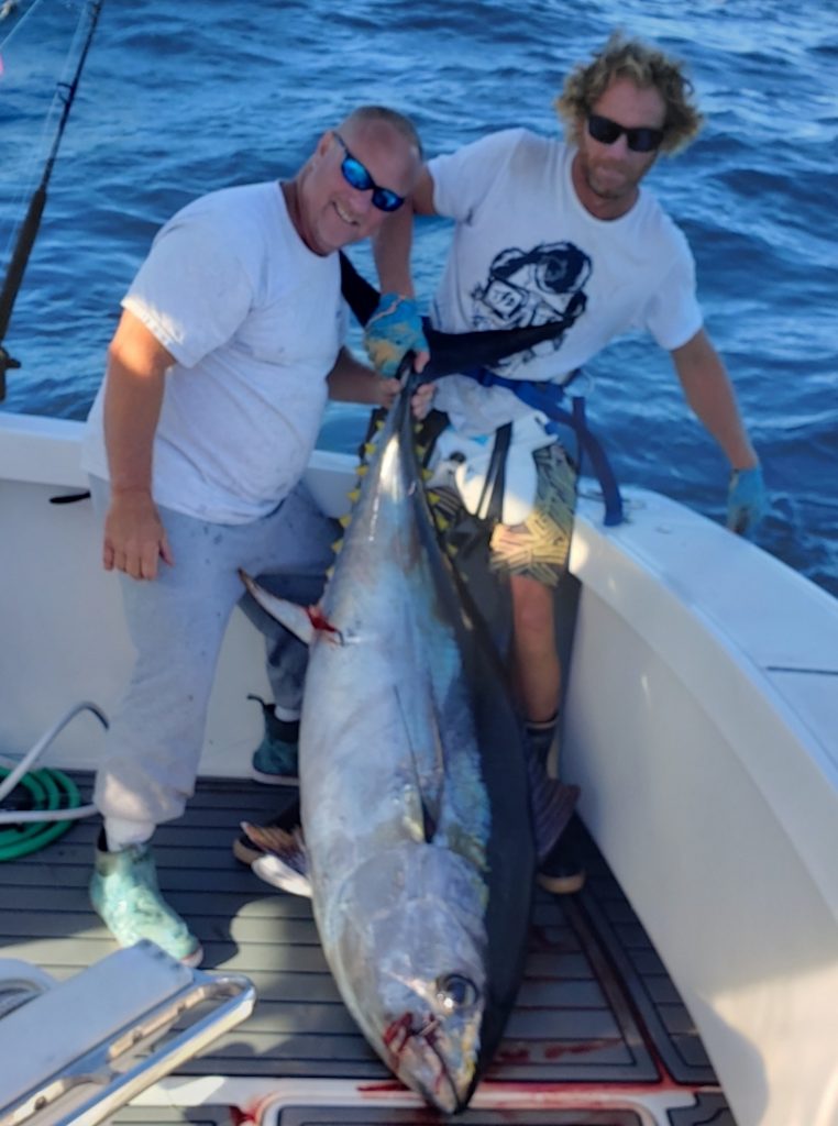 Yesterday Rich Daiker and a couple of buddies had a crazy good day with some stud yellowfin tuna and a bigeye tuna of 68″.