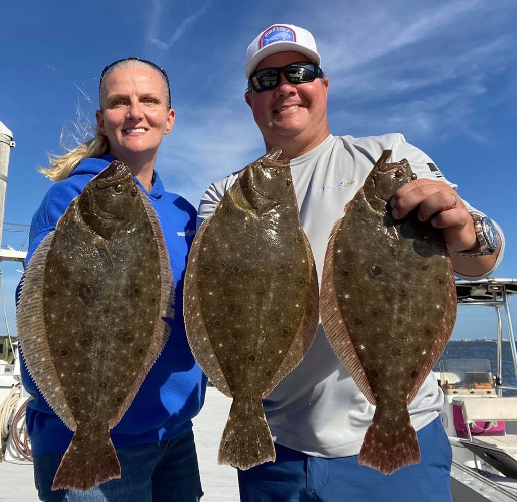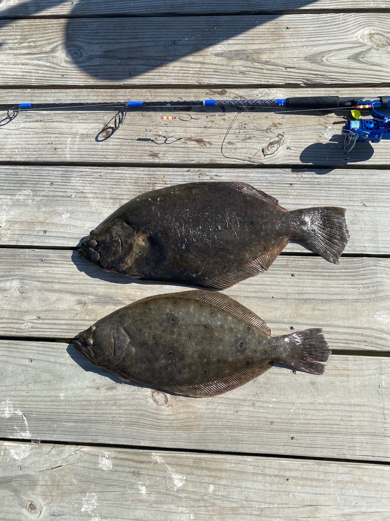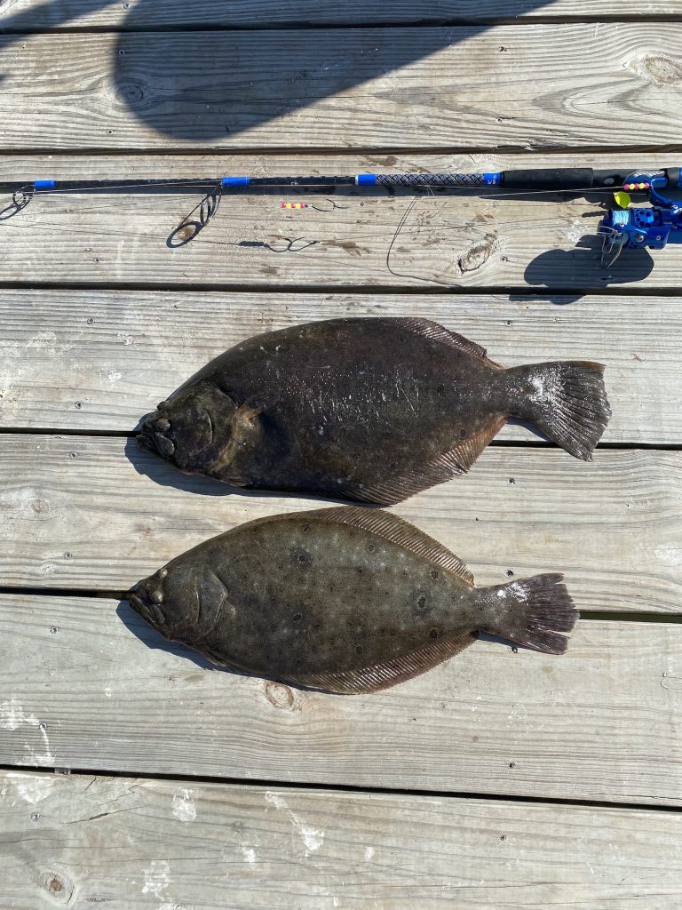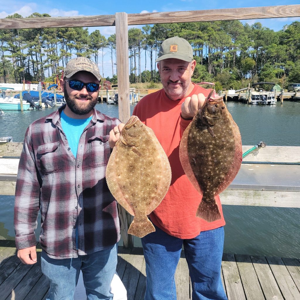 Wayne West got an anniversary present that consisted of being allowed to go fishing on his anniversary and he took full advantage of it putting a big 23″ keeper flounder in the box. His son Owen was on the wheel and added a 19″ keeper for himself for nice day on the water. They caught all of their fish on the Deadly Double with Gulp baits.