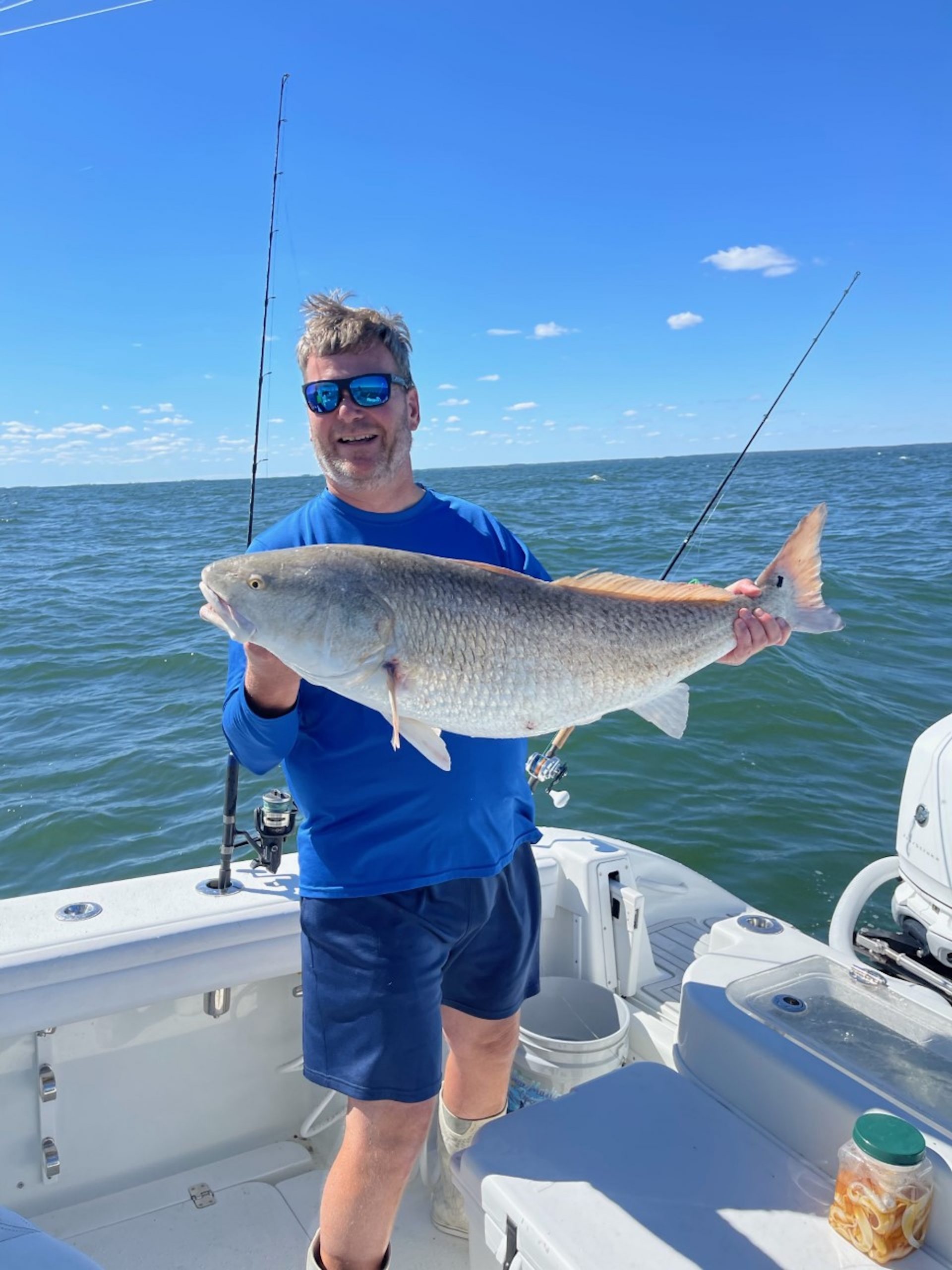 Andrew Swope caught and then released this 38 1/2″ red drum while fishing a few miles into the ocean with Stephen Hadley.