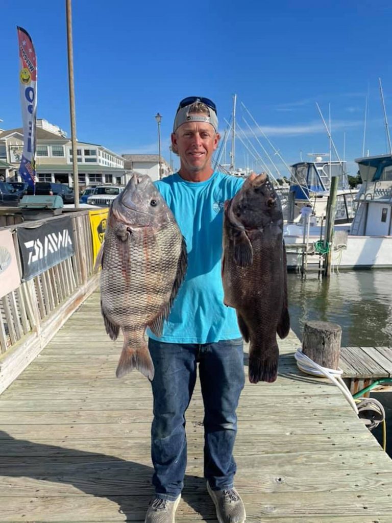 Jacob Webb weighed some studs at Lewes Harbour Marina in Lewes, DE this afternoon. Jacob had tautog up to 7 pounds and sheepshead up to 7.6 pounds.
