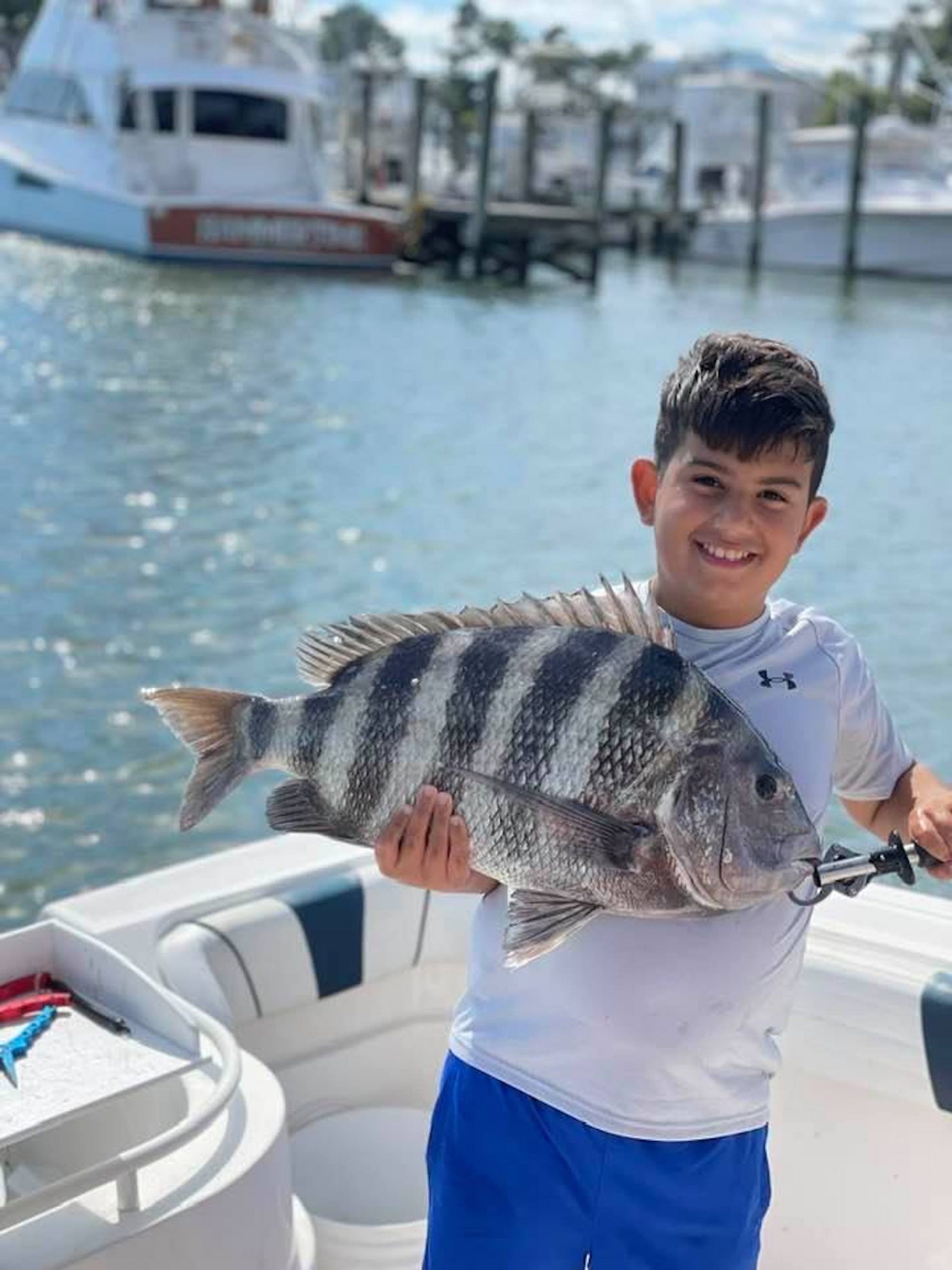 Ryan Neves had a big sheepshead on a trip to the OC inlet with his dad Carlos today.