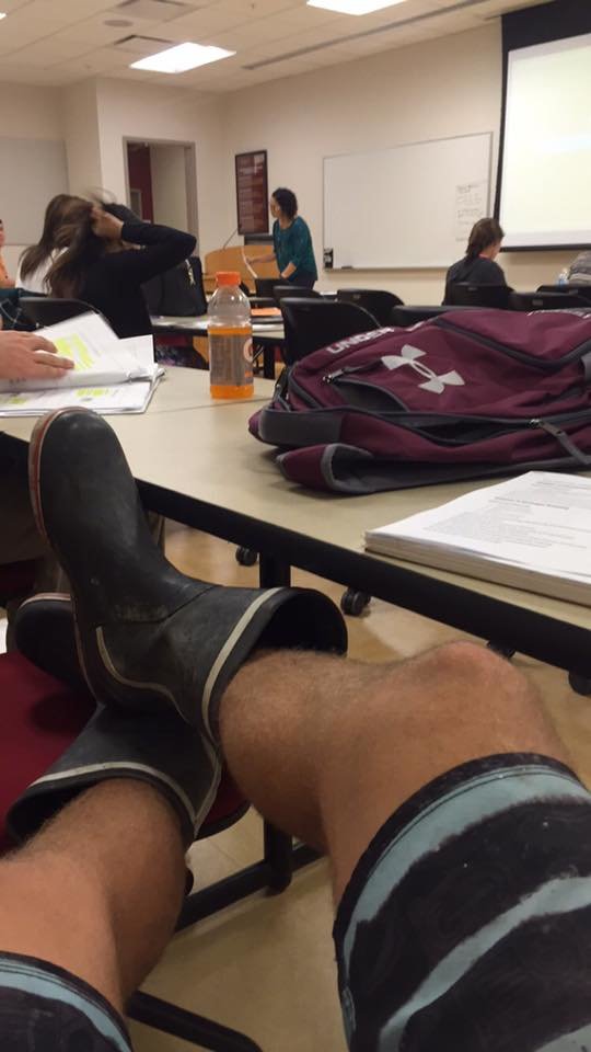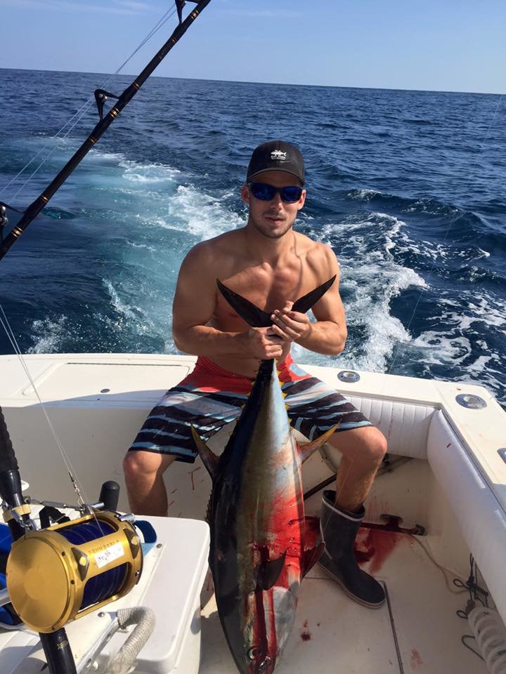 The first report that I had come in this evening was from my buddy Austin Ensor. Austin is a little on the “crazy about fishing” side. Austin headed to the deep late last night, fished all day, was back to the dock by 5:30 PM, was in his class at Salisbury University by 6:20 PM, took a test at 7:00 PM, is currently still sitting in class in his bloody boots…