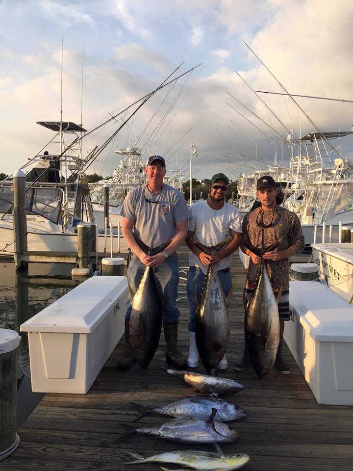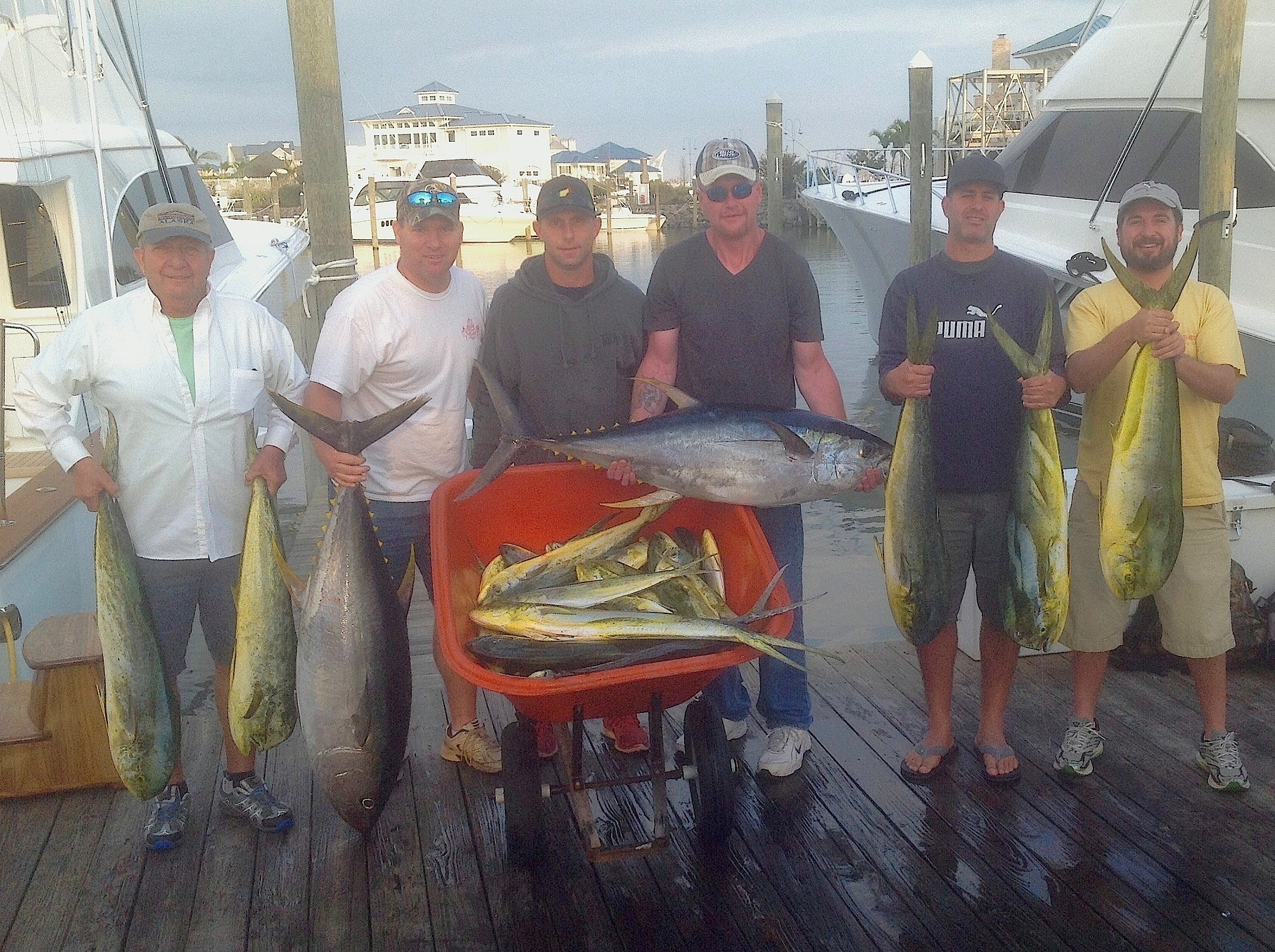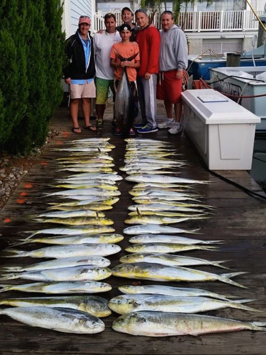 This group of anglers had a great day with a calm seas on the charter boat MARLI with Captain Mark Hoos and Mate Mark Stephens. They caught a limit of Mahi (60) and a pair of 80lb Yellowfin Tunas. The bite is on…