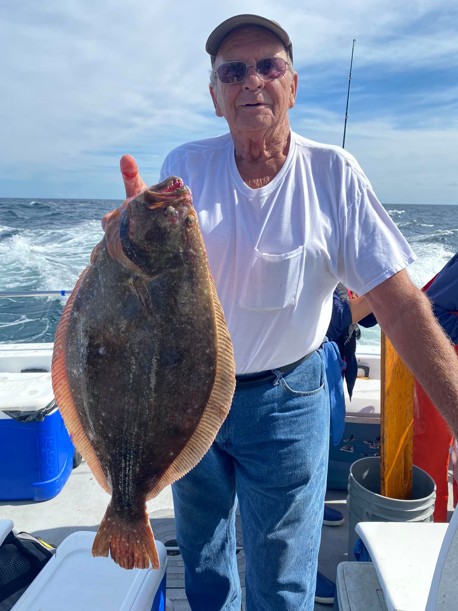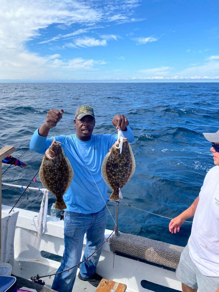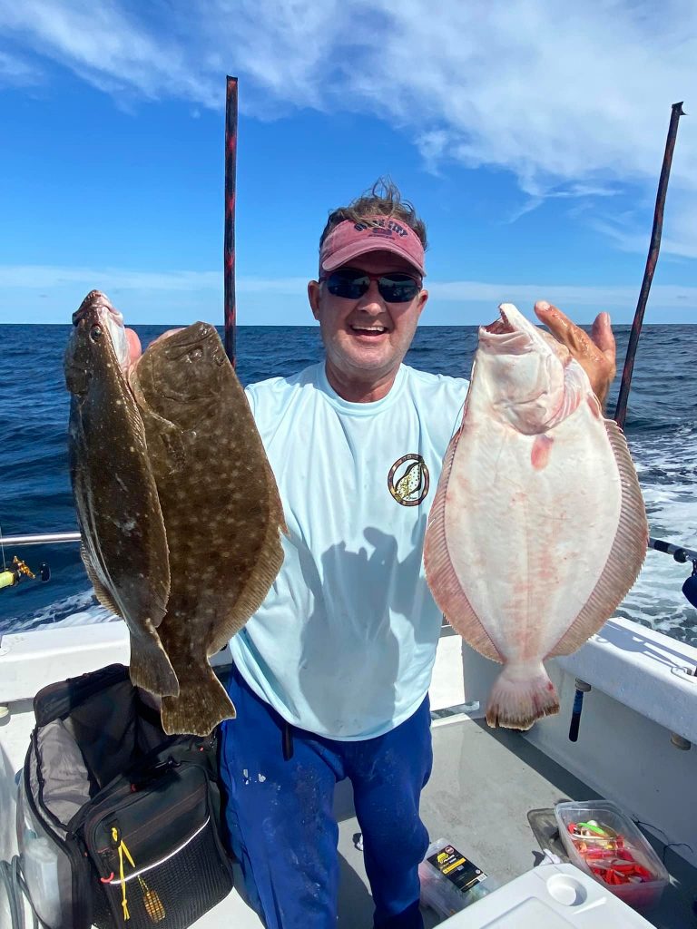 Ocean bottom fishing was a little tough today in the conditions and the fish were a little finicky, but Captain Chris Mizurak of the Angler still put his folks on some good fish with flounder up to just under 6 pounds.