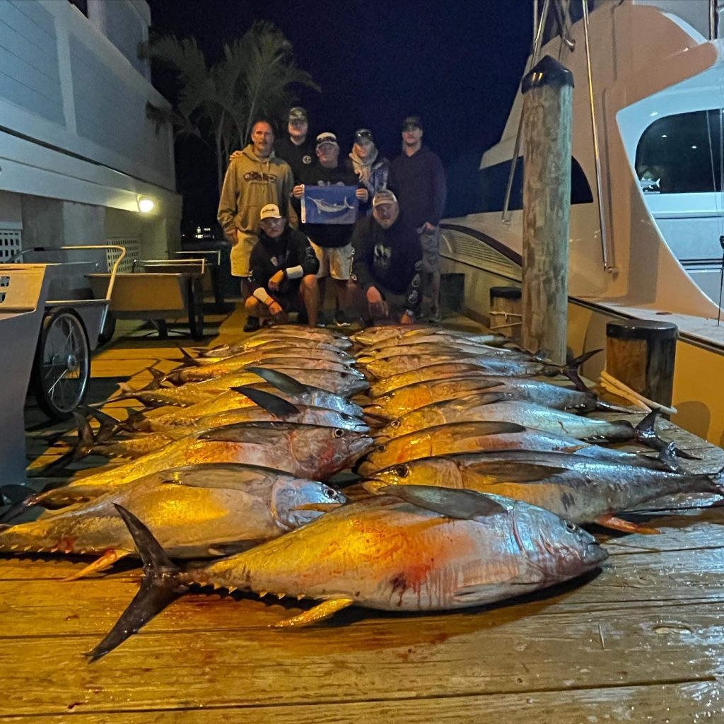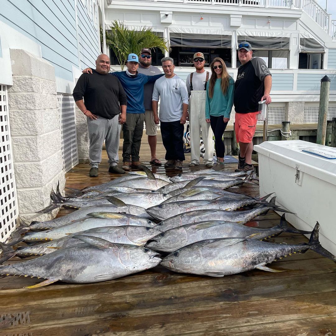 The crew of the Wrecker just down the dock at the Ocean City Fishing Center had an insane day of tuna fishing as well putting several hundred pounds of yellowfin on the dock.