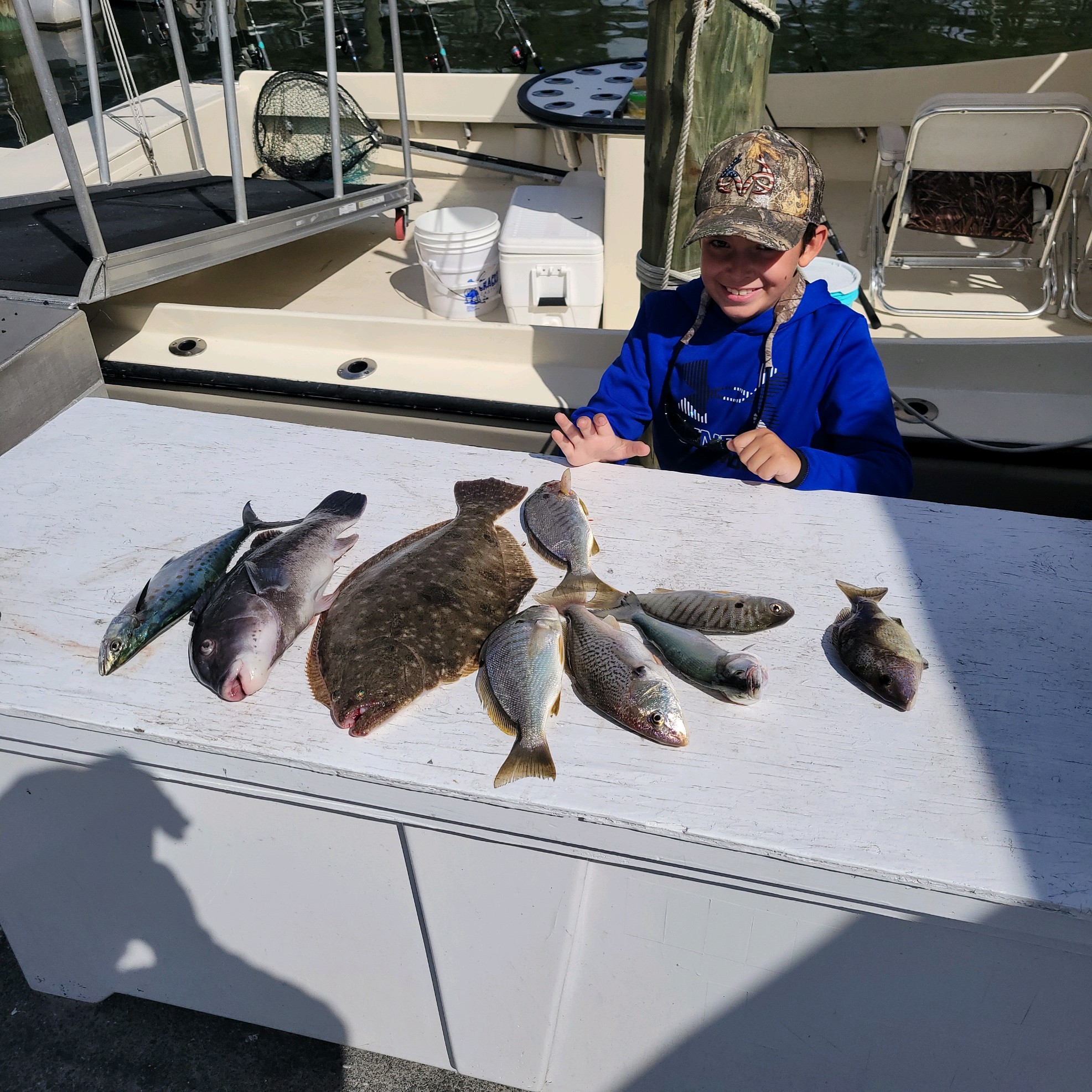 Captain Jason Mumford of Lucky Break had a nice morning for this family putting them on keeper sized versions of flounder, tautog, croaker, bluefish, Spanish Mackerel and triggerfish.