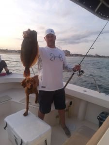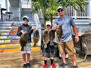 Captain Dave Caffrey of On the Run had a good day at the south jetty yesterday. Captain Dave and his crew used sand fleas to catch and release 10 tautog and 37 rockfish and also box this 19 1/2″ flounder.