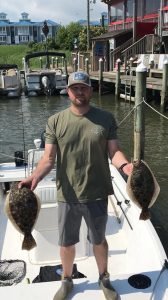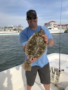 I had a chance to do a little flounder fishing myself this afternoon with my good friend and Fish in OC contributor Dale Timmons and we had a great time once again. We only managed a couple of fish, but one of them was this nice 22″ fattie that ate a live minnow on one of Dale’s Deadly Double rigs in the east channel south of the route 50 bridge.