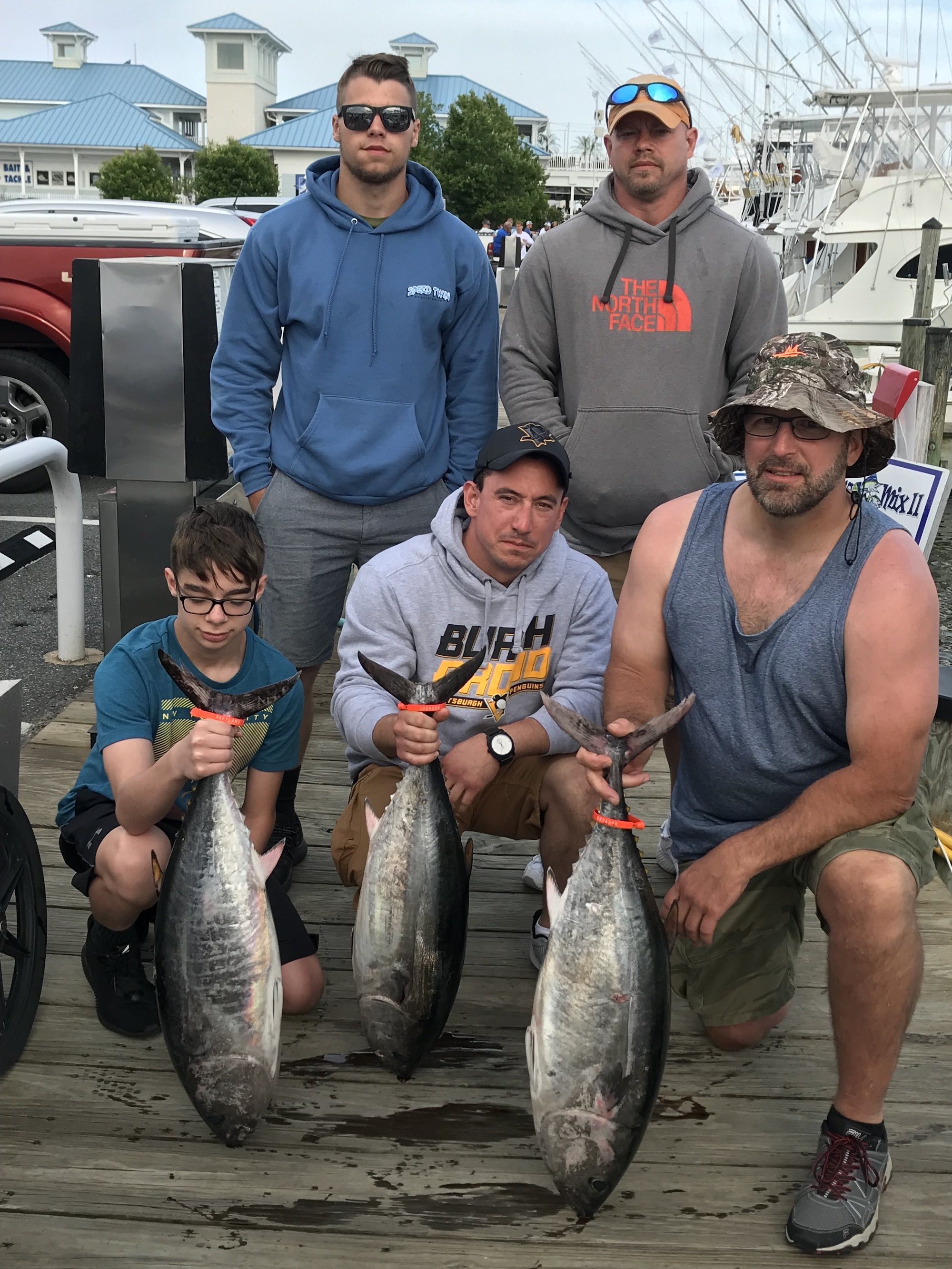 The crew of the Spring Mix II out of the Ocean City Fishing Center was in on the bluefin action today as well. Captain Chris Watkowski put his crew on their three “under” bluefins and released another seven fish.