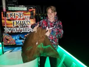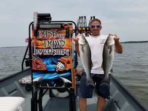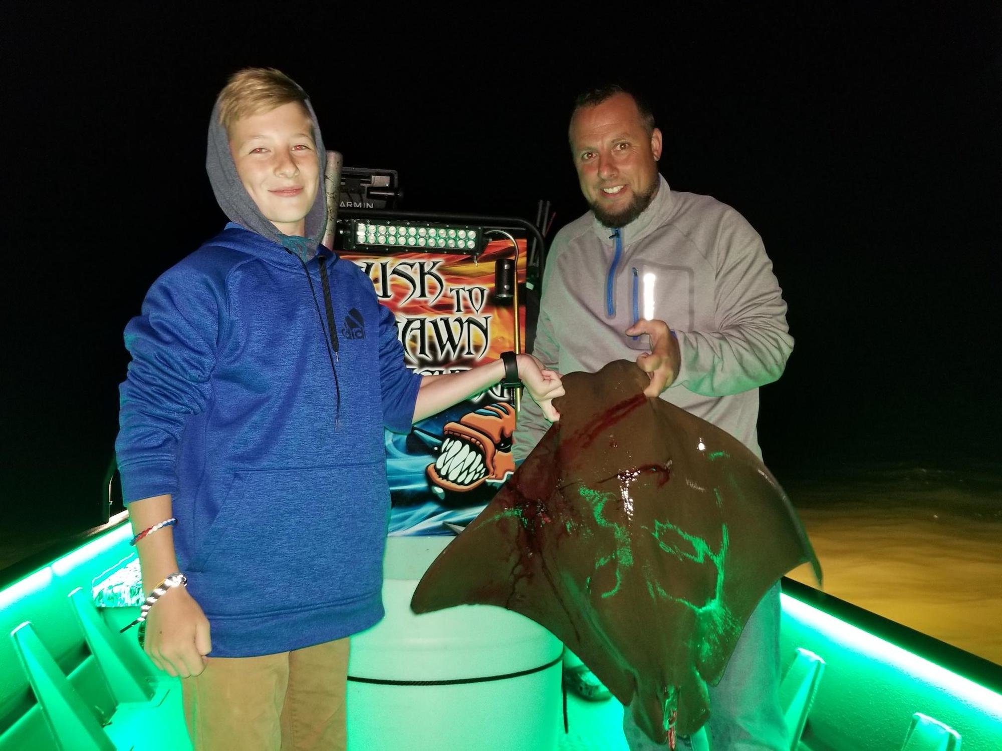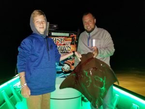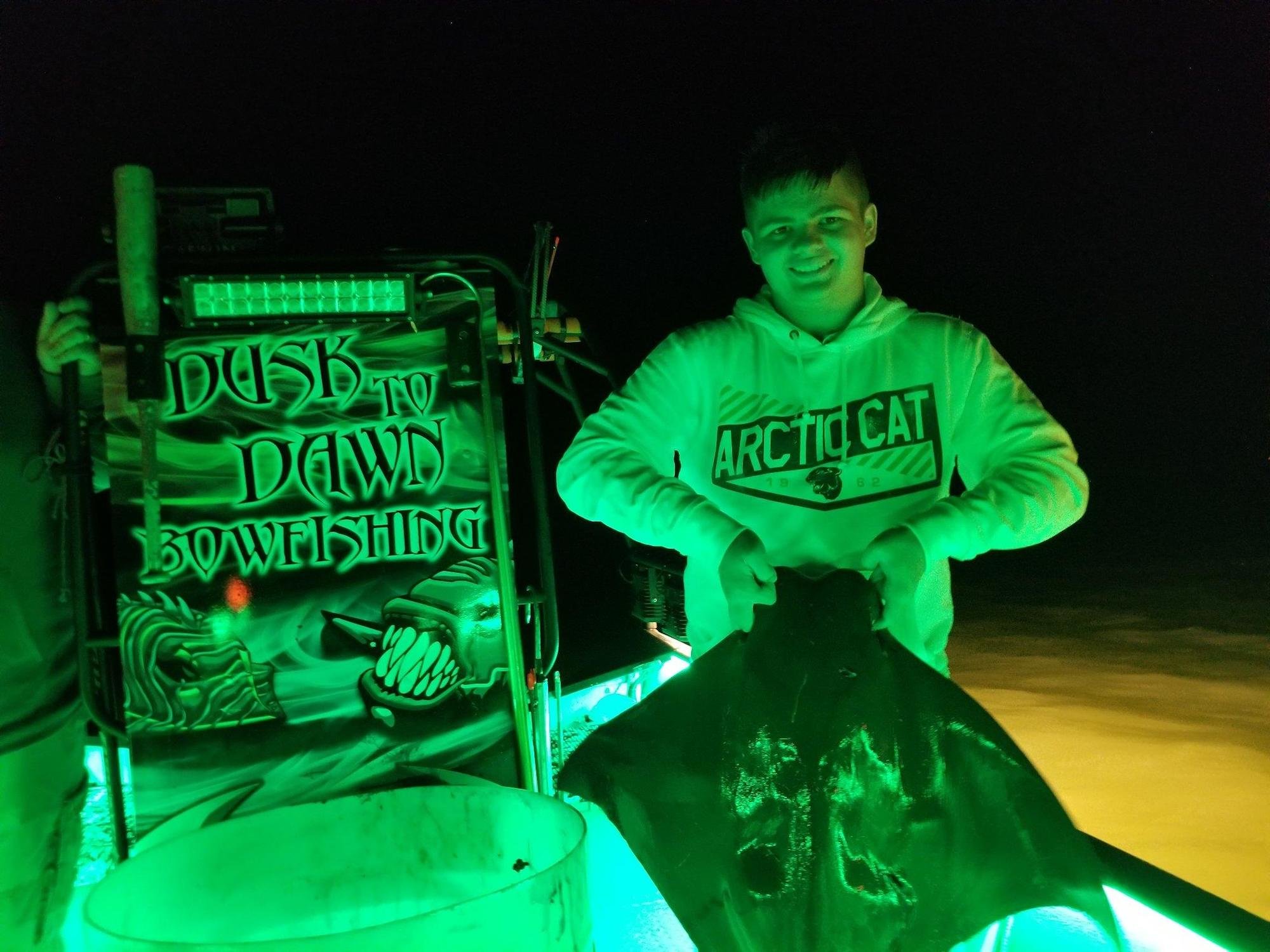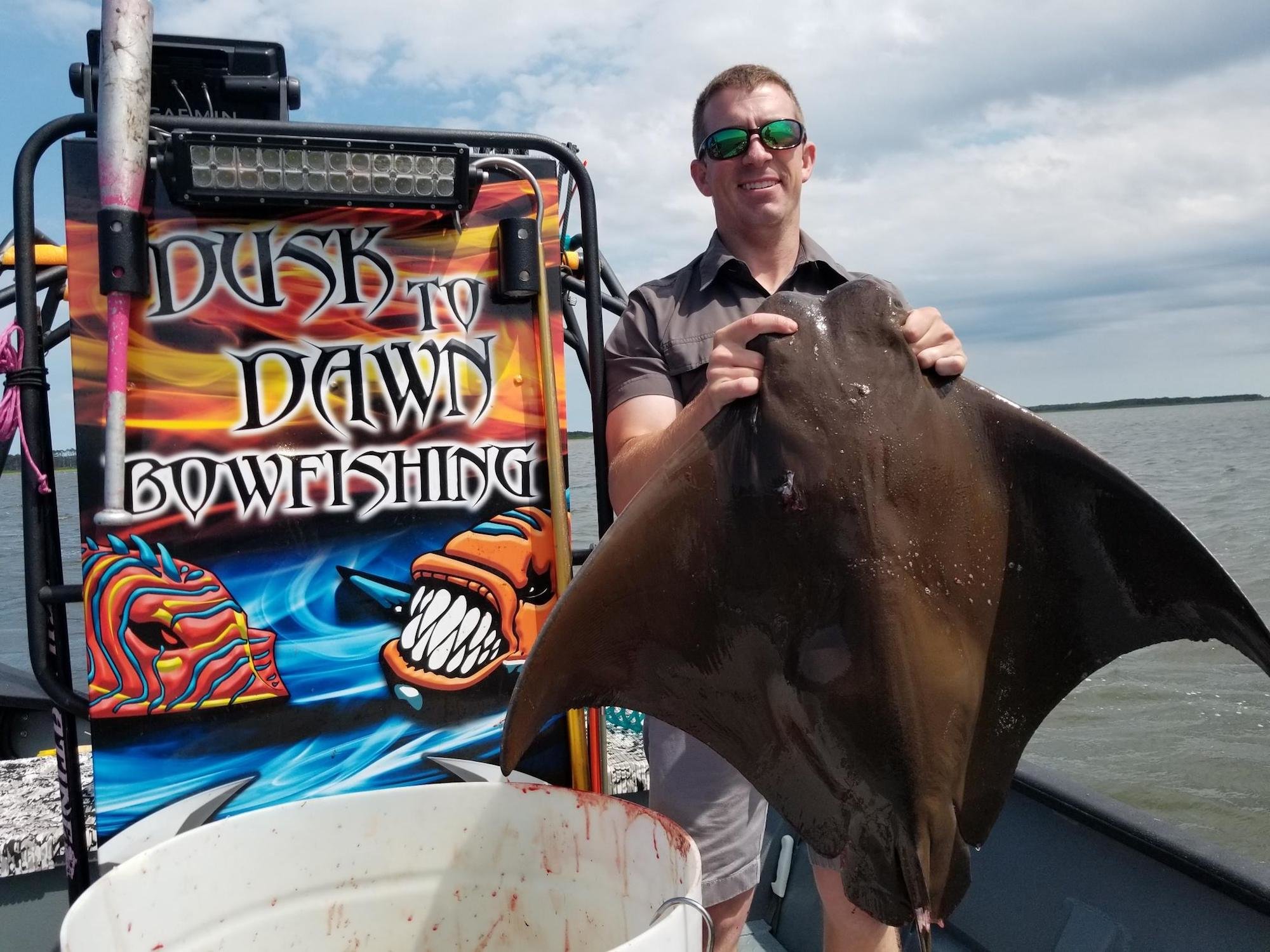 Captain Marc Spagnola of Dusk to Dawn Bowfishing has had some nice shooting for rays both day and night the past couple of trips. Captain Marc also took a fun fishing trip to the Choptank River where he landed himself a couple of healthy rockfish.