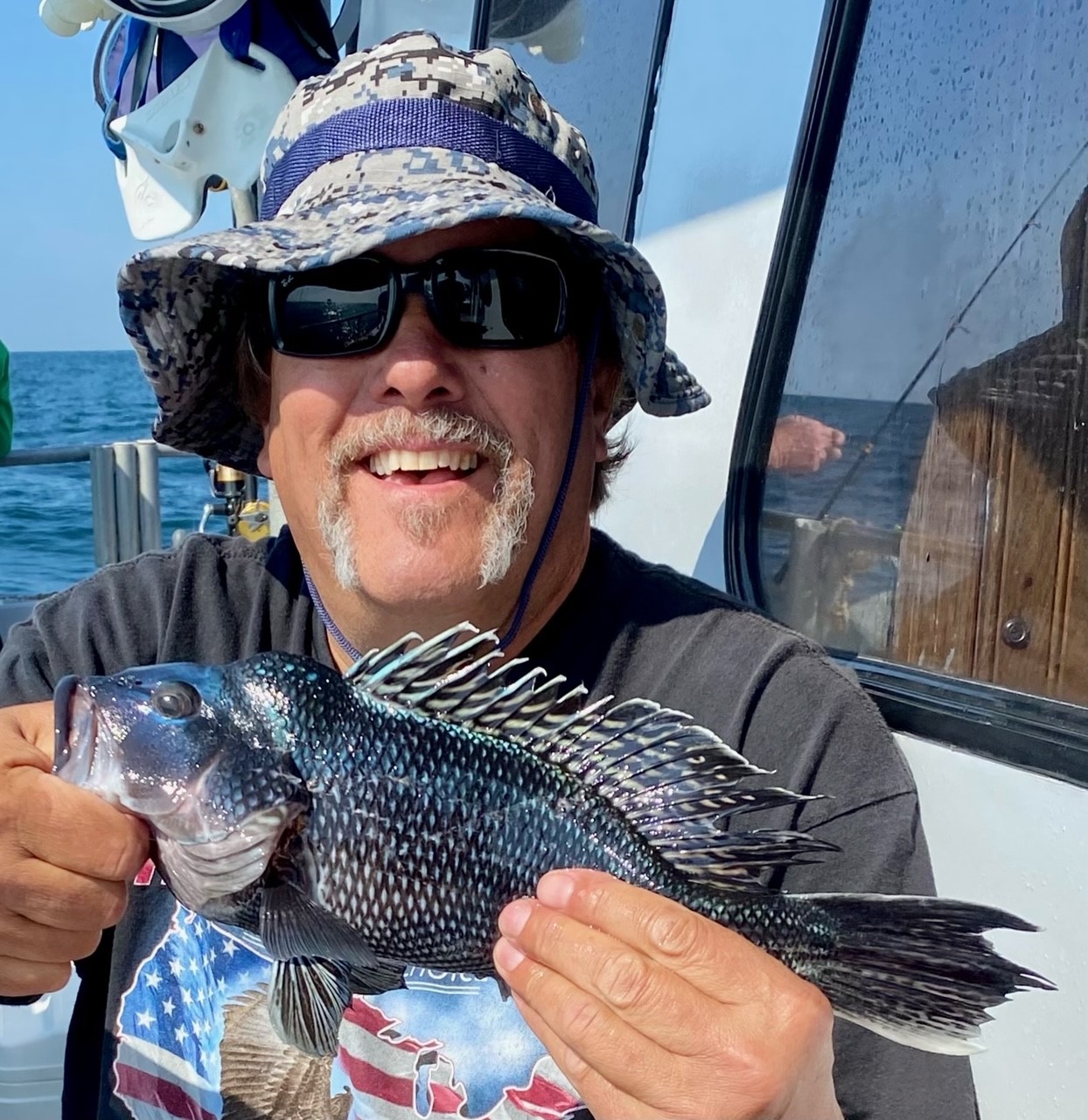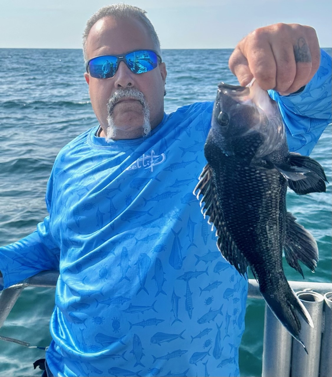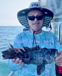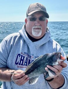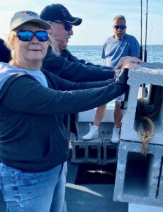 Sea bass 6/15/23 A small boat mariner might have called today’s seas ‘calm but confused’ & just that too. Hardly a breath of air but noticeable swells coming at us from every direction save west. Rock’n Roll! Ah well. ‘Twas more enjoyable than yesterday’s “5 to 10 knot” winds for sure. (Actually 18 all morning come 20 to 25 in the afternoon!) Long time OCRF sponsor, Shelly, and friend Steve surrendered today’s reef blocks to the sea atop Al Berger’s Reef. That reef looks good too. I anticipate plenty of beneficial growth such as sea whip on it. Once deployed we were underway a while more before getting our lines wet.. Mike from Pasadena took today’s pool money. Never did find a ‘hot spot’. Kept grinding away though. Nick one, pick one – time to get underway for home? NaaaMate, Keep Fishing. Time to BE home? Ah well, reckon we’d best wind em up & head ‘er for the barn..About a job today. Hope we got em all dinner. Really hope fluke come on. Catch a pair or so most days. They saved us big time in the 2007/8 sea bass decline. I sure hope we can get the little fellows spawning at the (sea) Bass Grounds. . . More on that soon. Cheers, Monty