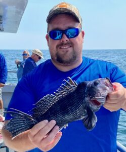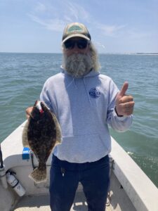 Jason Sutton and Gary Fischer had a busy day catching some sea bass, some sea robins and some keeper flounder up to 22″ on the ocean today.