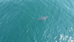 Captain Chris Mizurak of the Angler had a great day with the sea bass today with the Hovnanian Homes group, and he got a sick shot of a great white shark cruising nearby with the drone!
