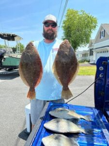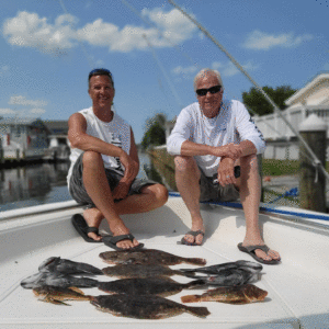 Kevin McNelis was fishing with his dad over ocean structure today when they landed some flounder up to 20″ and some nice triggerfish.