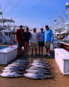 Captain Chase Eberle and the crew of Chasin Tides Charters has been putting his anglers on the yellowfin as well, and also some sharks, bluefish, flounder and sea bass.