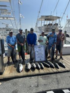There has been some really good tuna fishing in the canyons for boats pulling spreader bars and ballyhoo over the past several days. Captain Chris Watkowski and the crew of Spring Mix II made quick work of it with 15 yellowfins going in the box before noon.