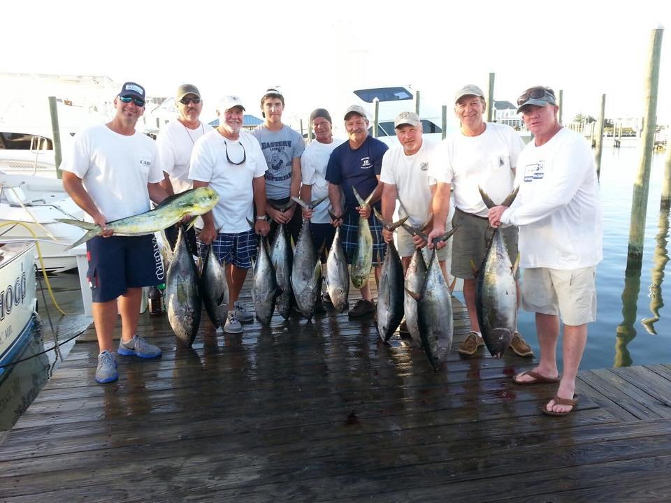 Anglers on the Marli out of Sunset Marina captured 12 yellowfin and 1 dolphin and released another 8 short yellowfin in the Washington canyon with Captain Mark Hoos and mate Mark Stephens. The seas were calm and the fish were biting….doesn’t get much better than that!