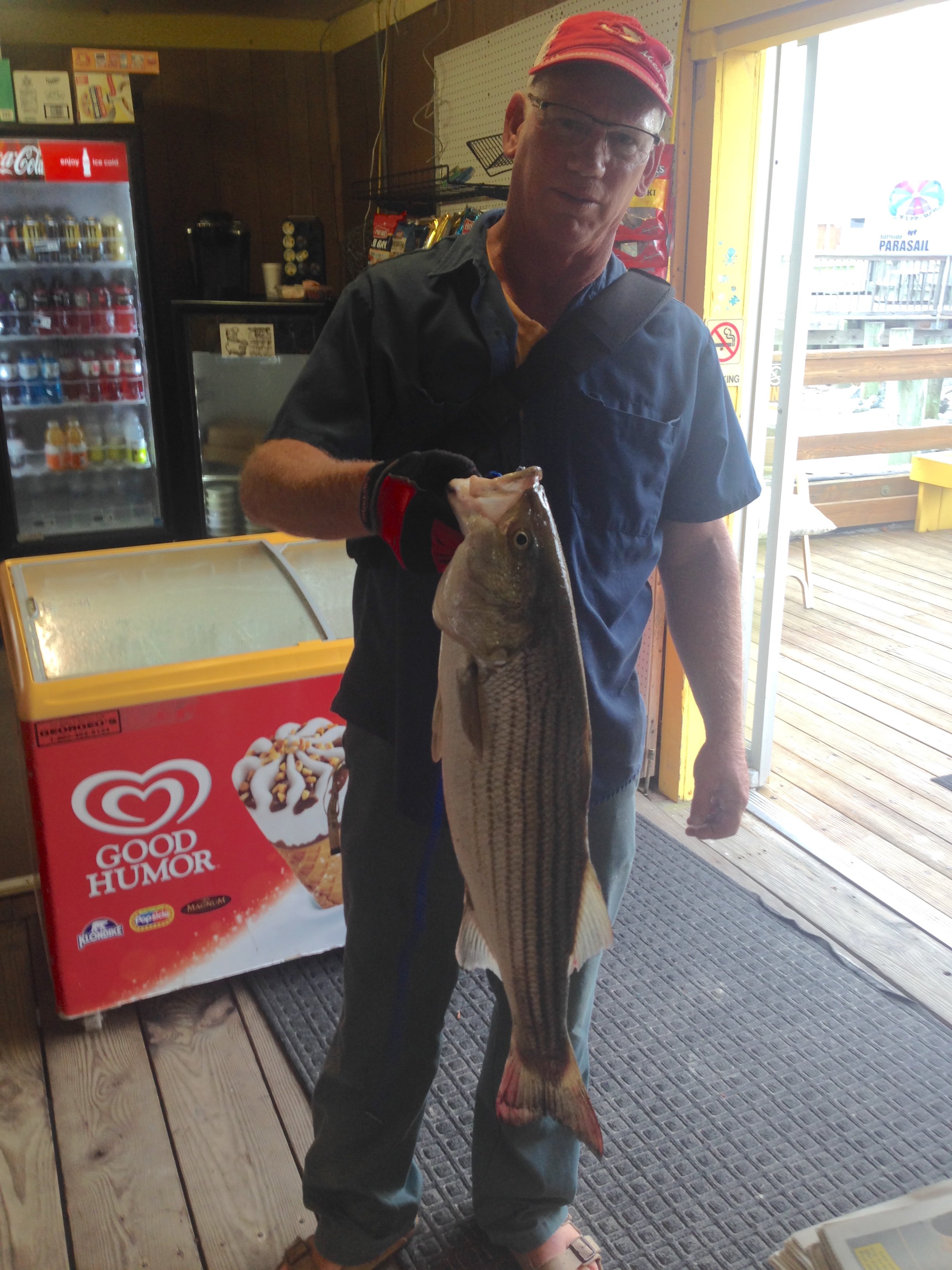 Bear at the Oceanic Pier in downtown Ocean City submitted a photo of a nice keeper rockfish caught by Andy of Milford, DE while fishing the route 50 bridge. Bear also said that there are lots of blues and trout being caught off of the pier on sabiki rigs the past couple of days.