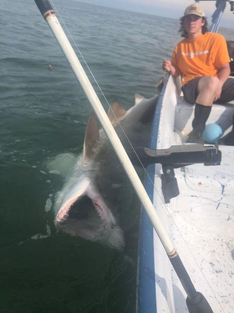 Donny Post and the boys were shark fishing off of Ocean City today when they caught and released some sand tigers sharks including fish of 7′ and over 10′.