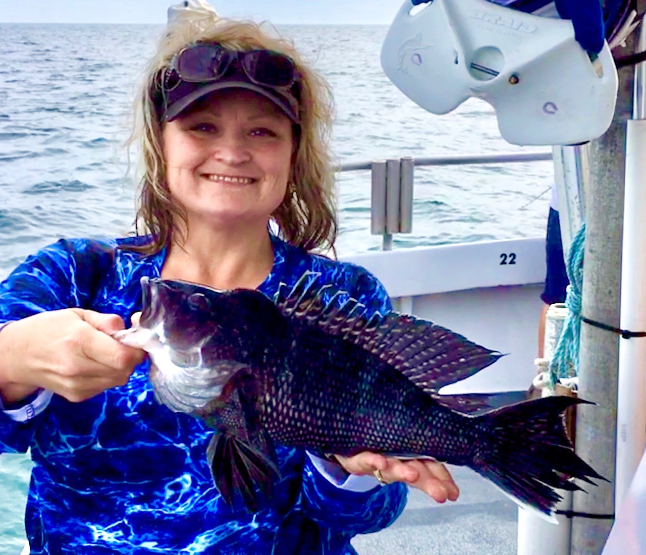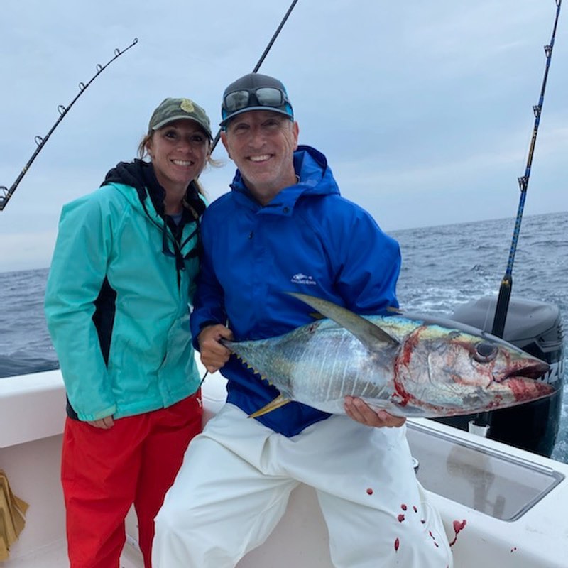 There was a little swell left in the ocean today after yesterday’s blow, but it had laid down enough to make it way more than fishable. Flounder fishing in the bay is still a little slow thanks to yesterday’s wind and rain, but ocean fishing for sea bass and tuna was off the hook today….you see what I did there?!