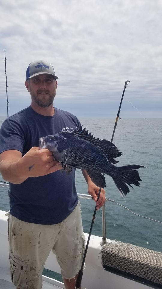 Captain Chris Mizurak of the Angler got a couple of pictures of some sea bass that came over the rail today thanks to stellar sea bass fishing that continues. There have also been a few flounder mixing in recently.