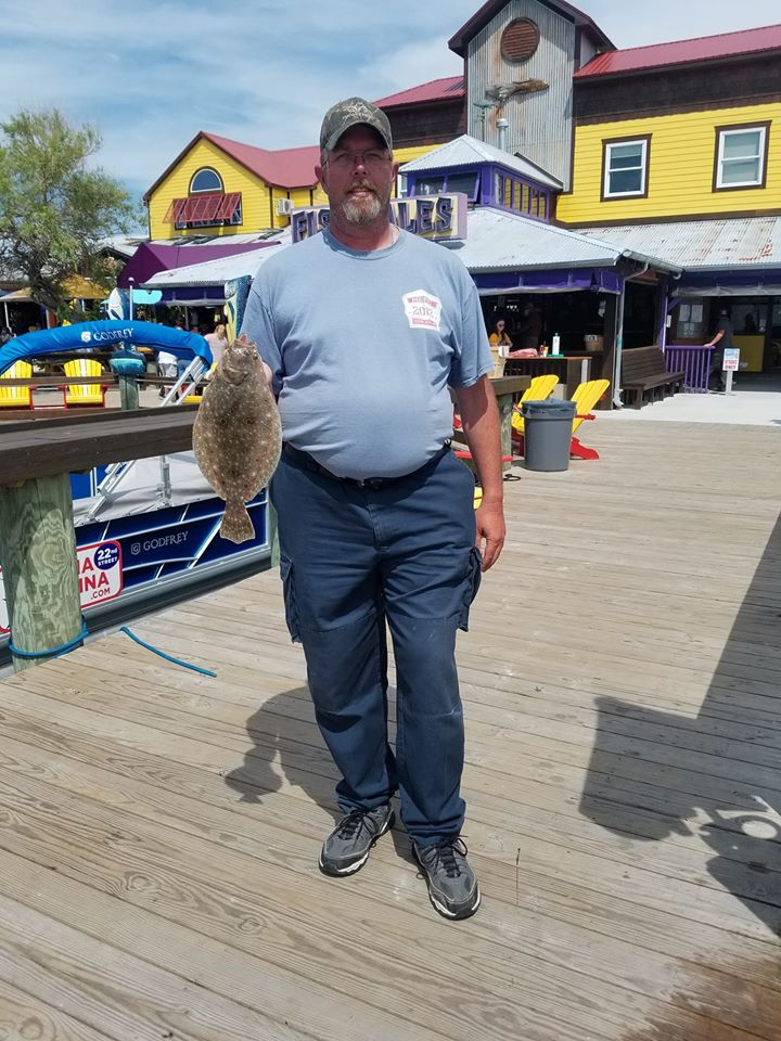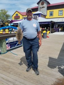 Captain Drew Zerbe of the Tortuga found a little clean water this afternoon that produced a keeper flounder for this lucky fish pool winner.