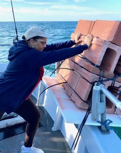 Melani Jackson of Syracuse NY dropped 20 blocks and two pyramids on a reef I’m hoping to improve. Lat/Lon to all our artificial reefs are published in OC Reef Foundation’s annual chart book. These days there are more coordinates listed there than I had all together in the early 1990s.