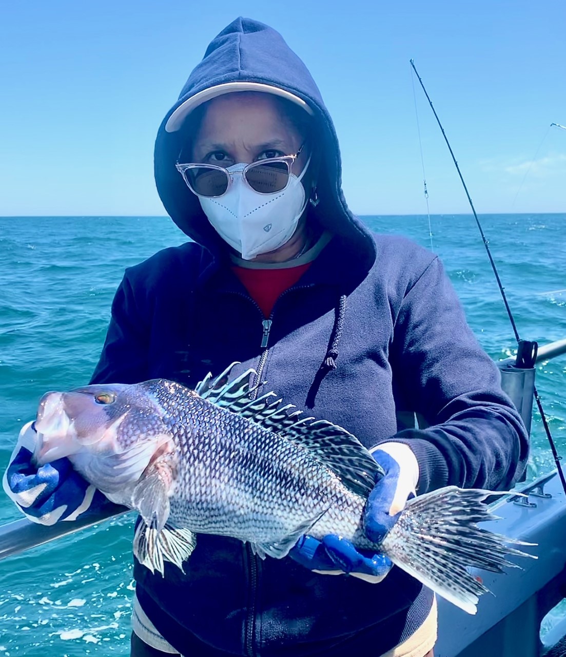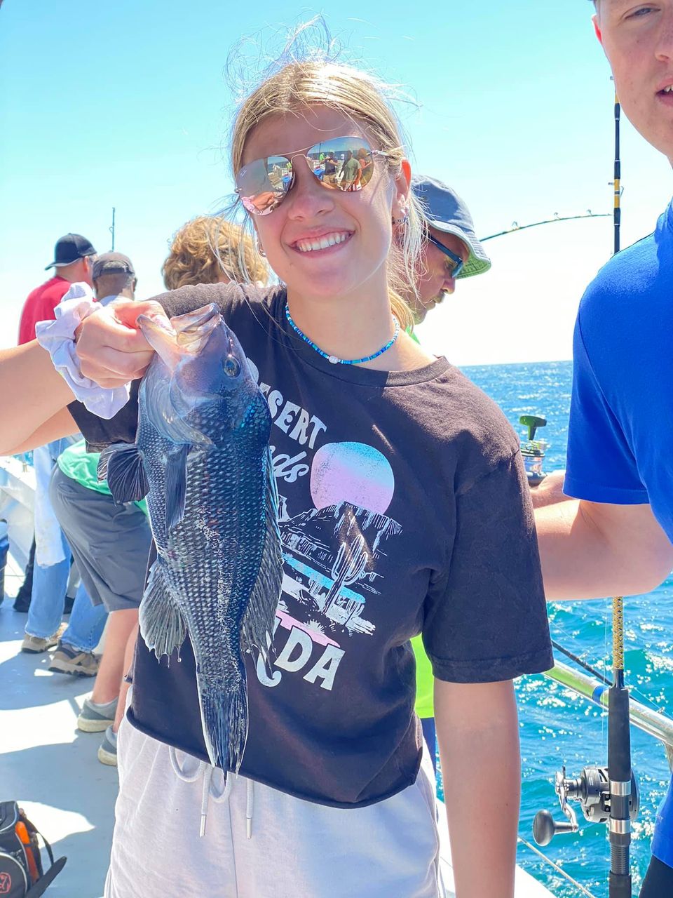 Veronica Cannuli was fishing with her dad Vince when she landed what we think is the first sheepshead in Ocean City this season. The fish was a nice one too at a fat 23″.