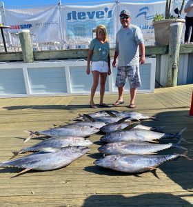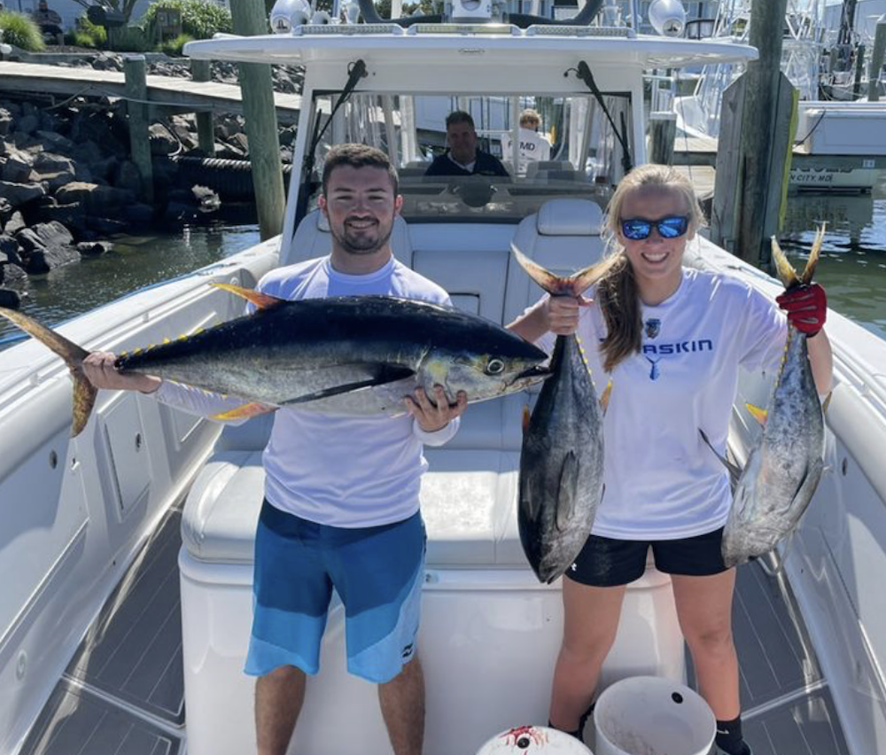 Captain Corey Kennington put Tina and Art on a limit of yellowfin tuna for their private boat Lucky Duck.