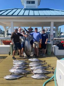 Captain Joe Drosey of Rhonda’s Osprey had a fantastic day of trolling for his anglers putting them on 18 yellowfin tuna and getting them back to the dock before 1.
