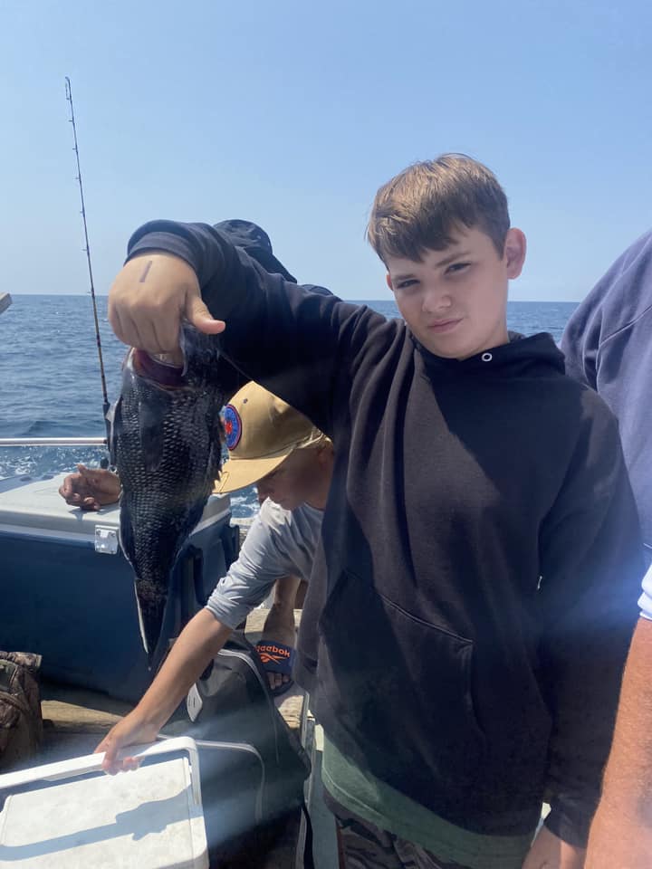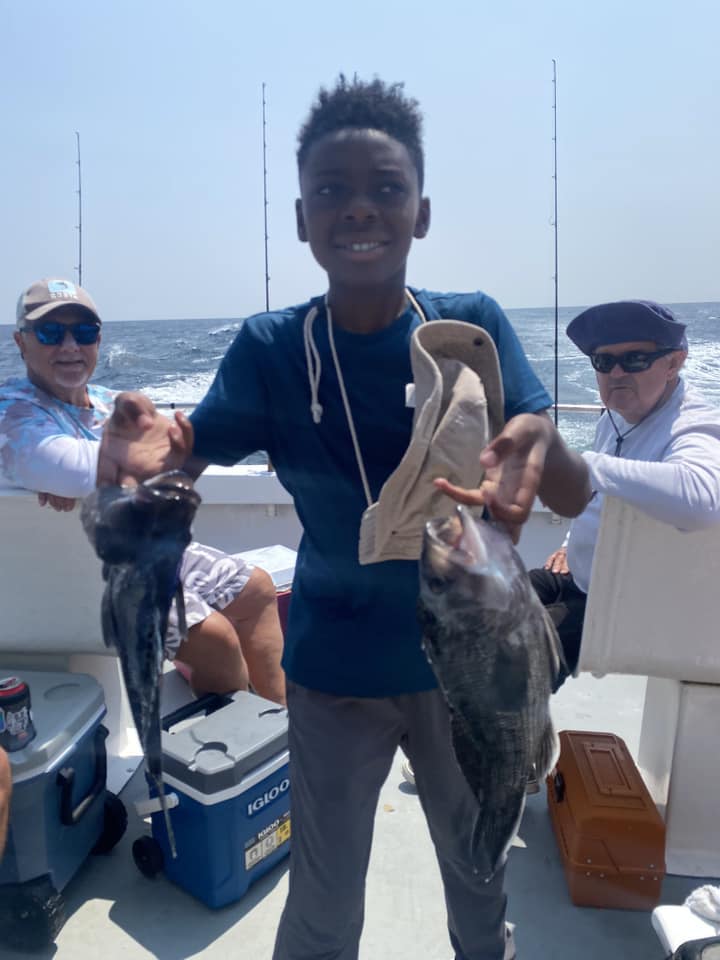 Captain Chris Mizurak of the Angler is enjoying the nice weather and his patrons are enjoying some flounder and keeper sea bass.