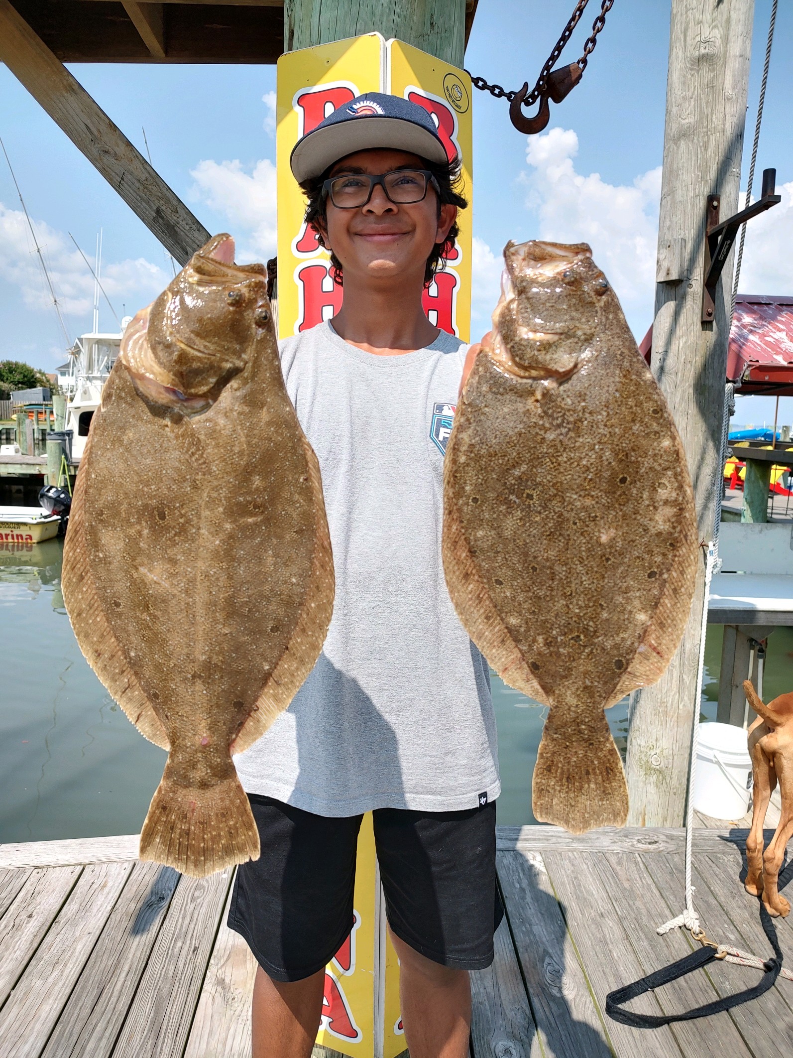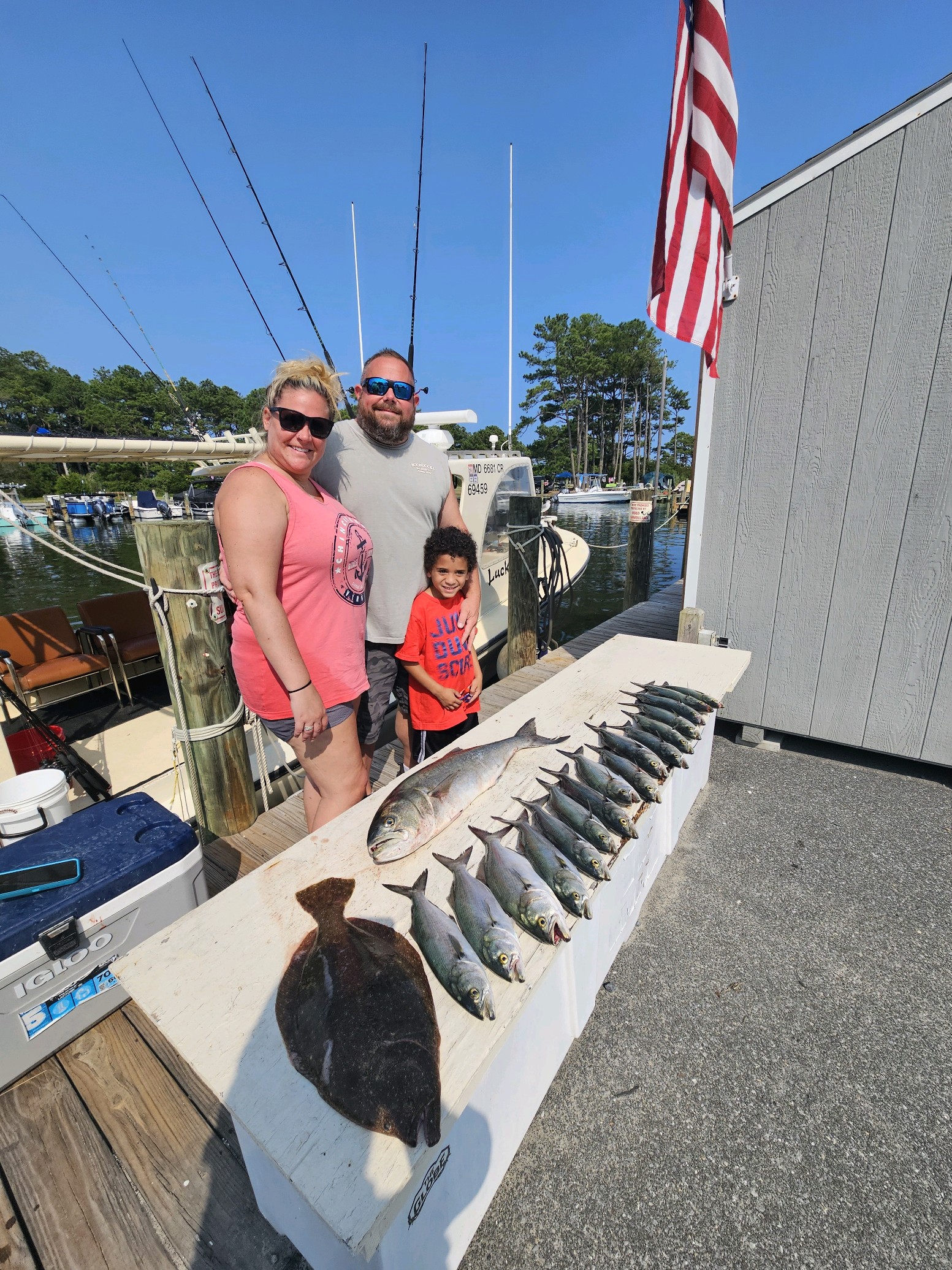 Anglers fishing on Chasin Tides Charters with Captain Chase Eberle had fun today catching flounder and bluefish in the East Channel and at the route 50 bridge.