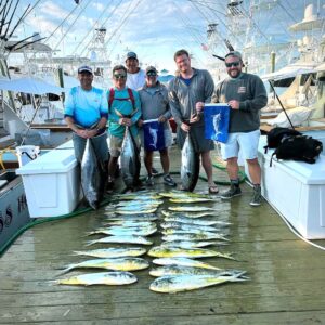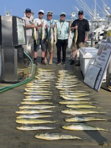 Captain Chris Watkowski and mate Chase Porter had a good day with their crew today putting them on a limit of mahi.