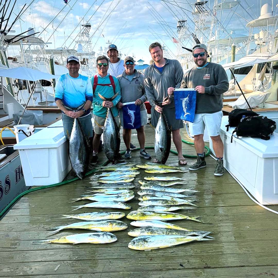 The crew of Boss Hogg had a great day offshore with two white marlin releases, three yellowfin tuna and a lineup of mahi.