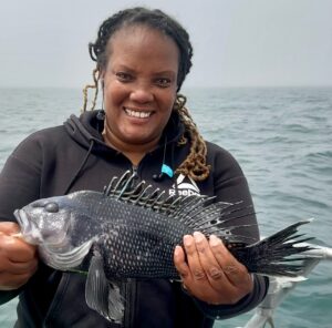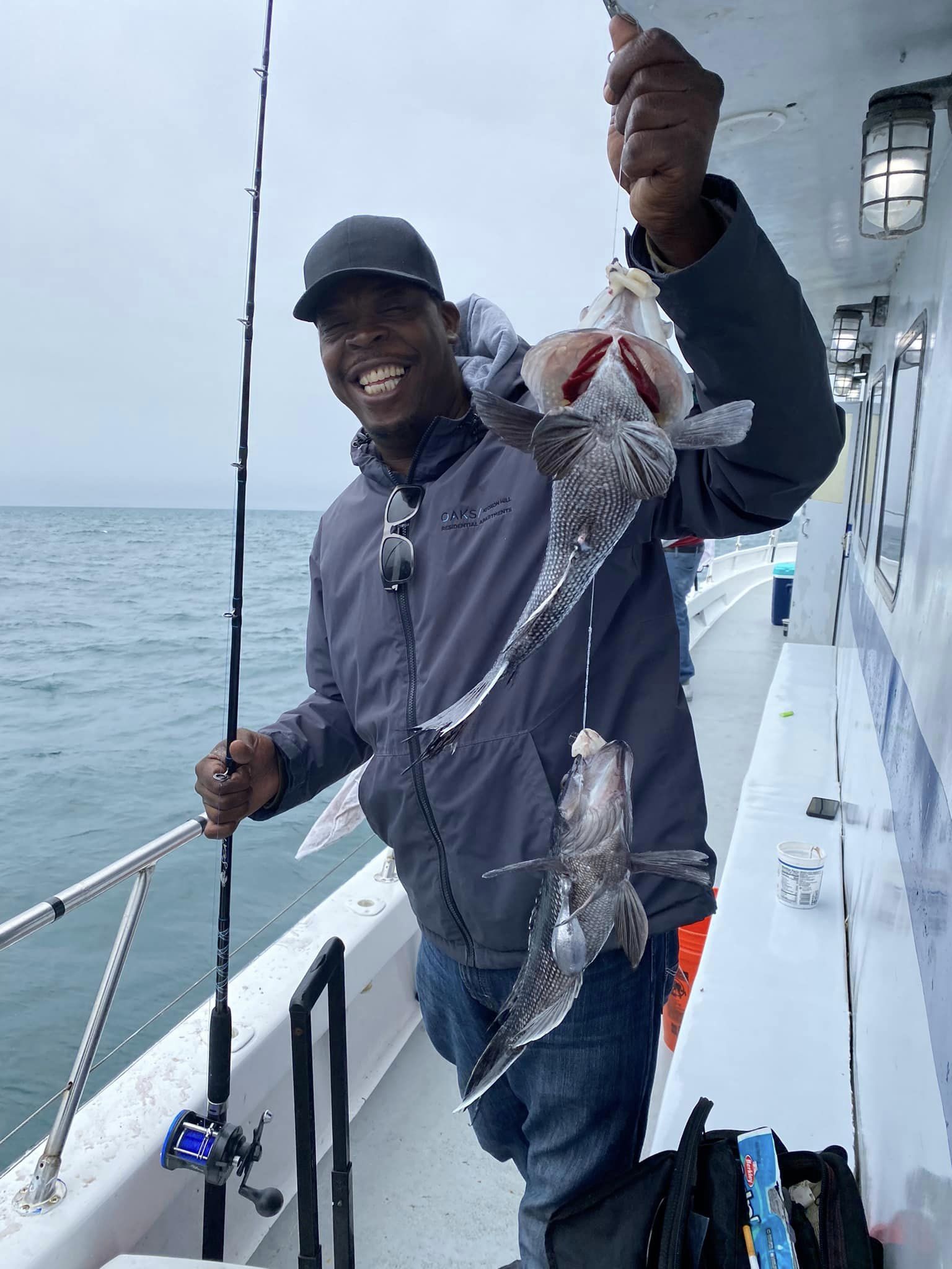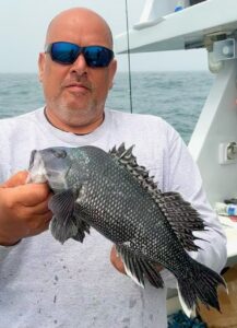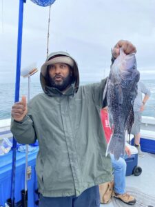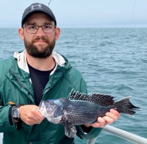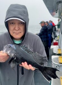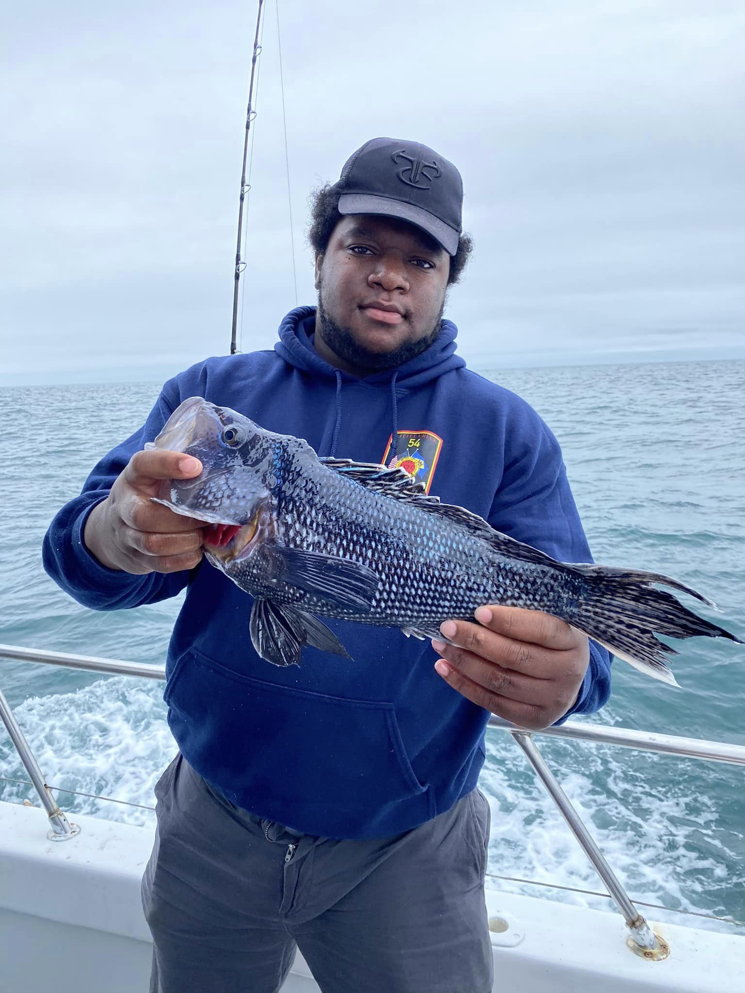 Captain Monty Hawkins of the Morning Star was happy to get out today after the wind and reported a decent day of sea bass fishing for his crew.