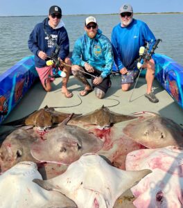 Captain Marc Spagnola of Dusk to Dawn Bowfishing is burning the candle at both ends again now that the season has started full swing. Day and night trips are producing some awesome shooting for southern and cow nosed rays.