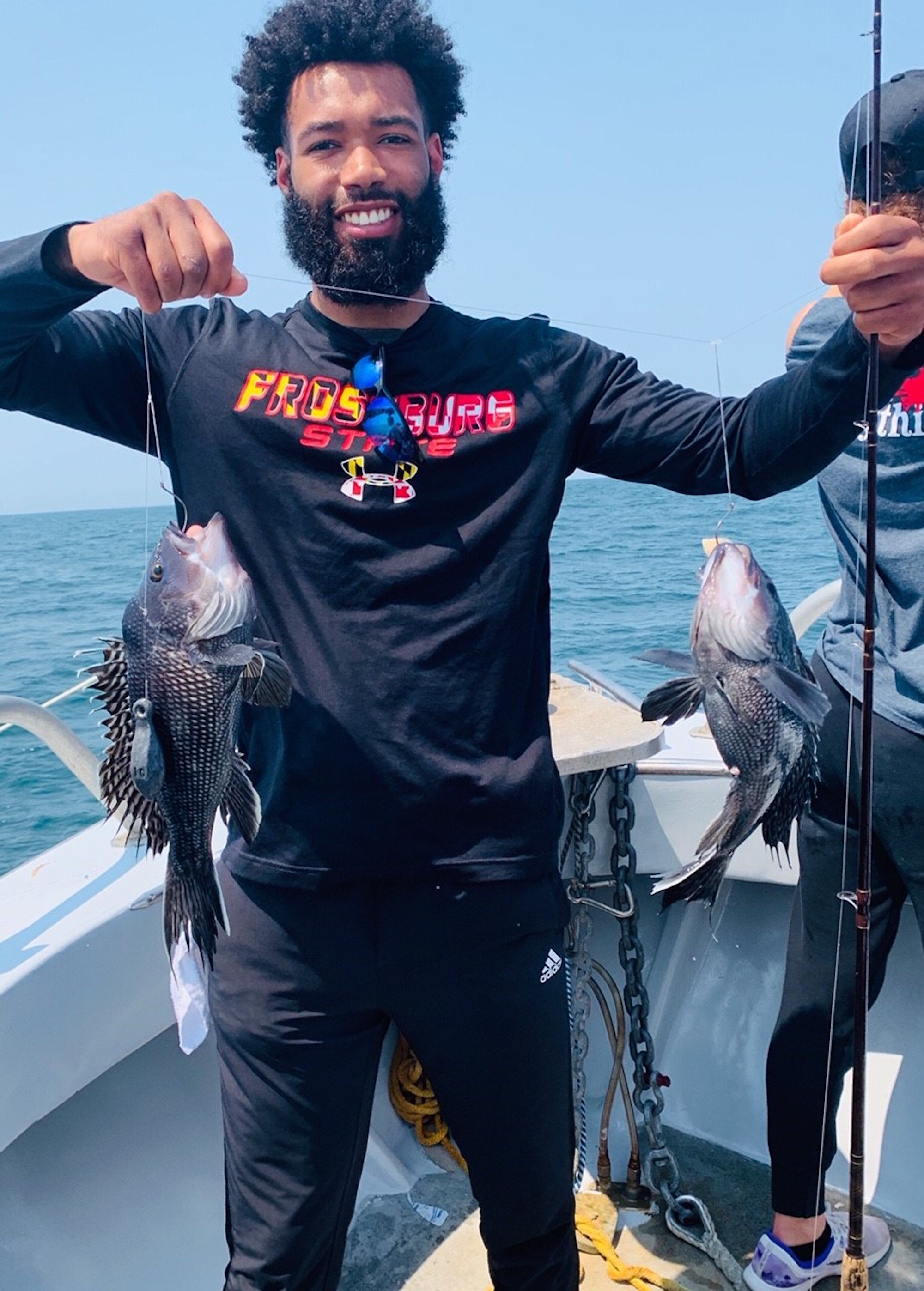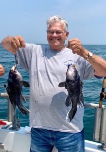 Earl Macer of Annapolis MD (grey t) shows off a fine double.